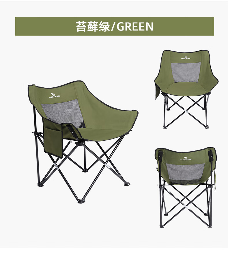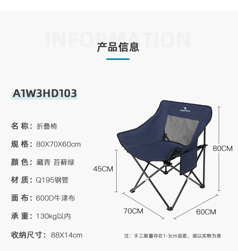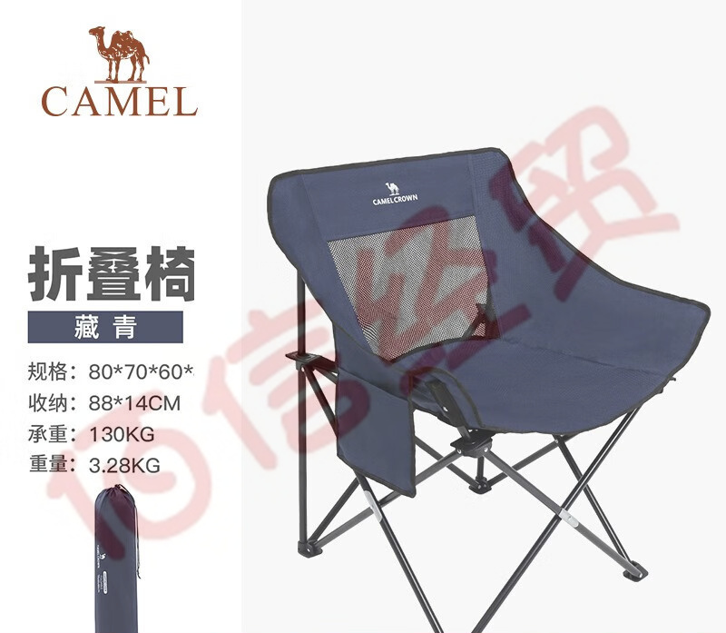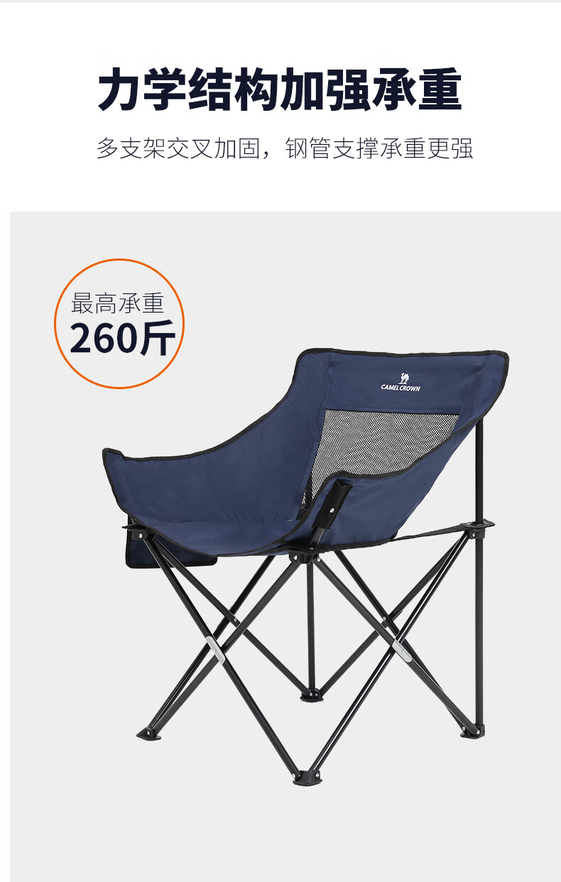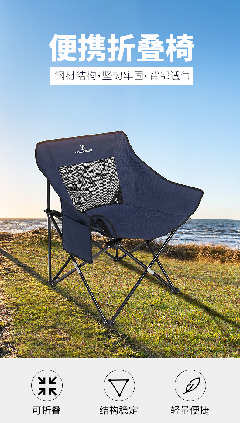 駱駝(CAMEL)戶外折疊椅子便攜式超輕露營(yíng)釣魚凳月亮椅鋁合金靠背椅野餐折疊凳 A1W3HD103,藏青 自營(yíng)