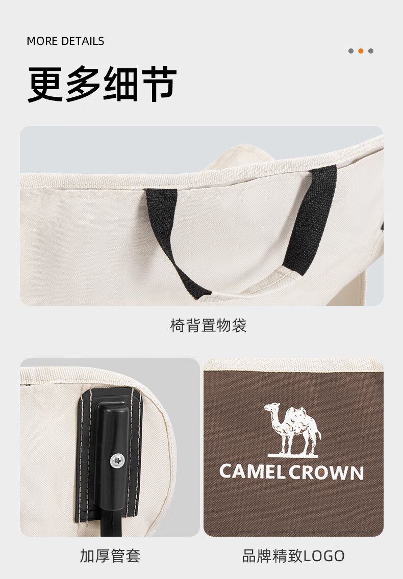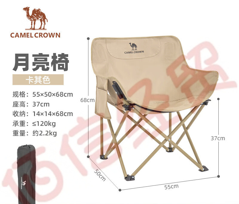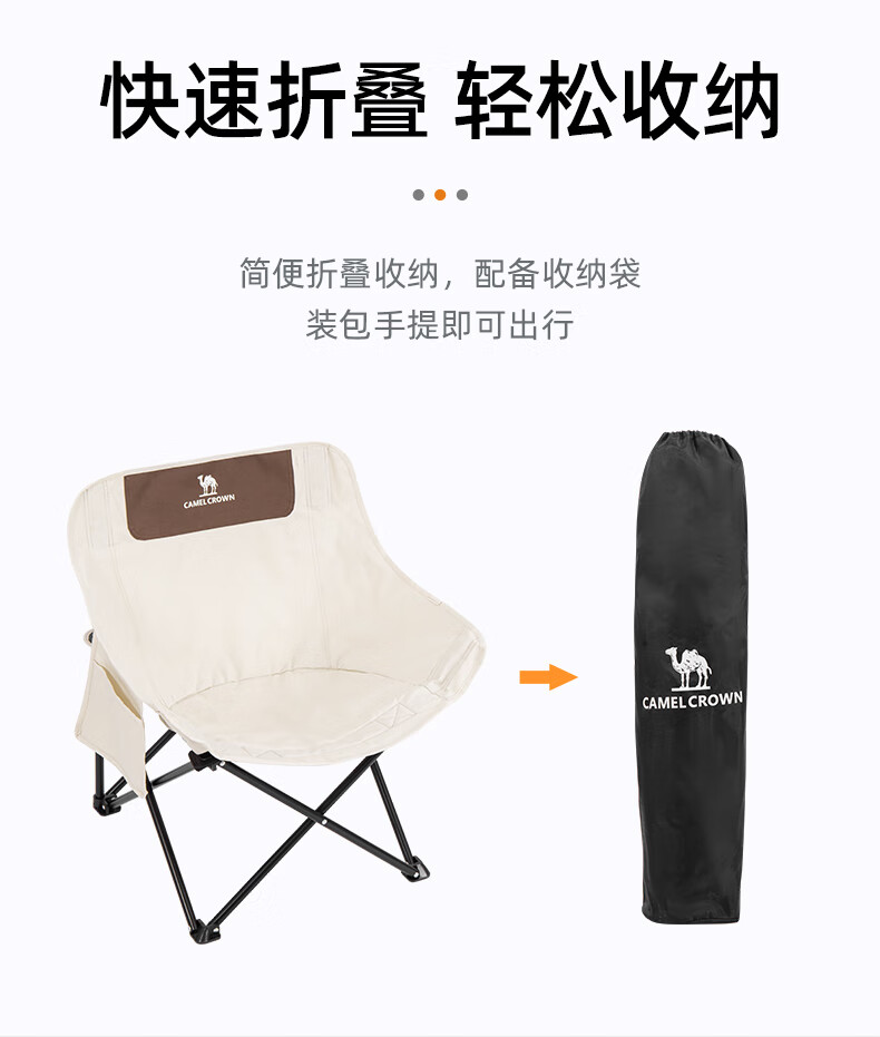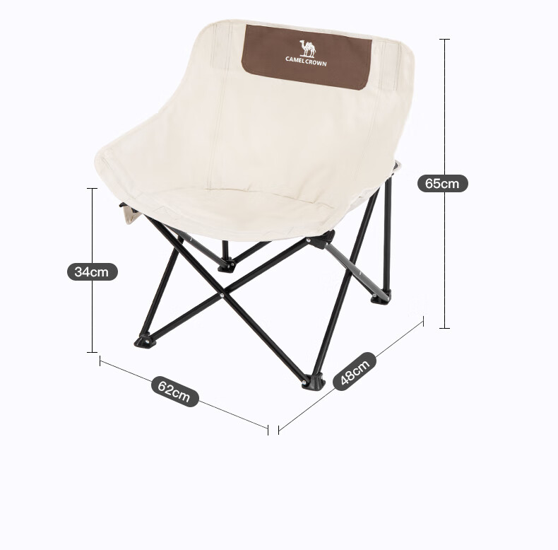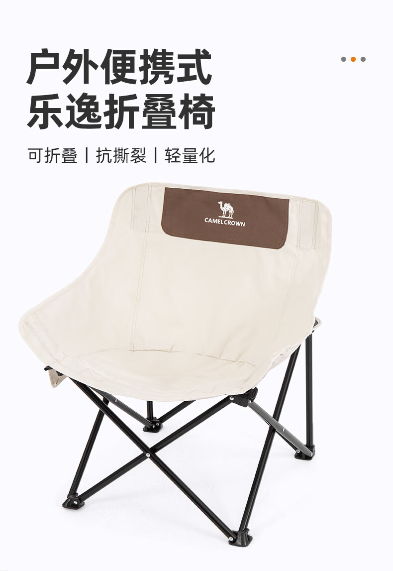 駱駝CAMELCROWN戶外野餐折疊椅子精致露營便捷式釣魚凳美術(shù)生寫生椅月亮椅 1J32265970-2A,卡其色 自營