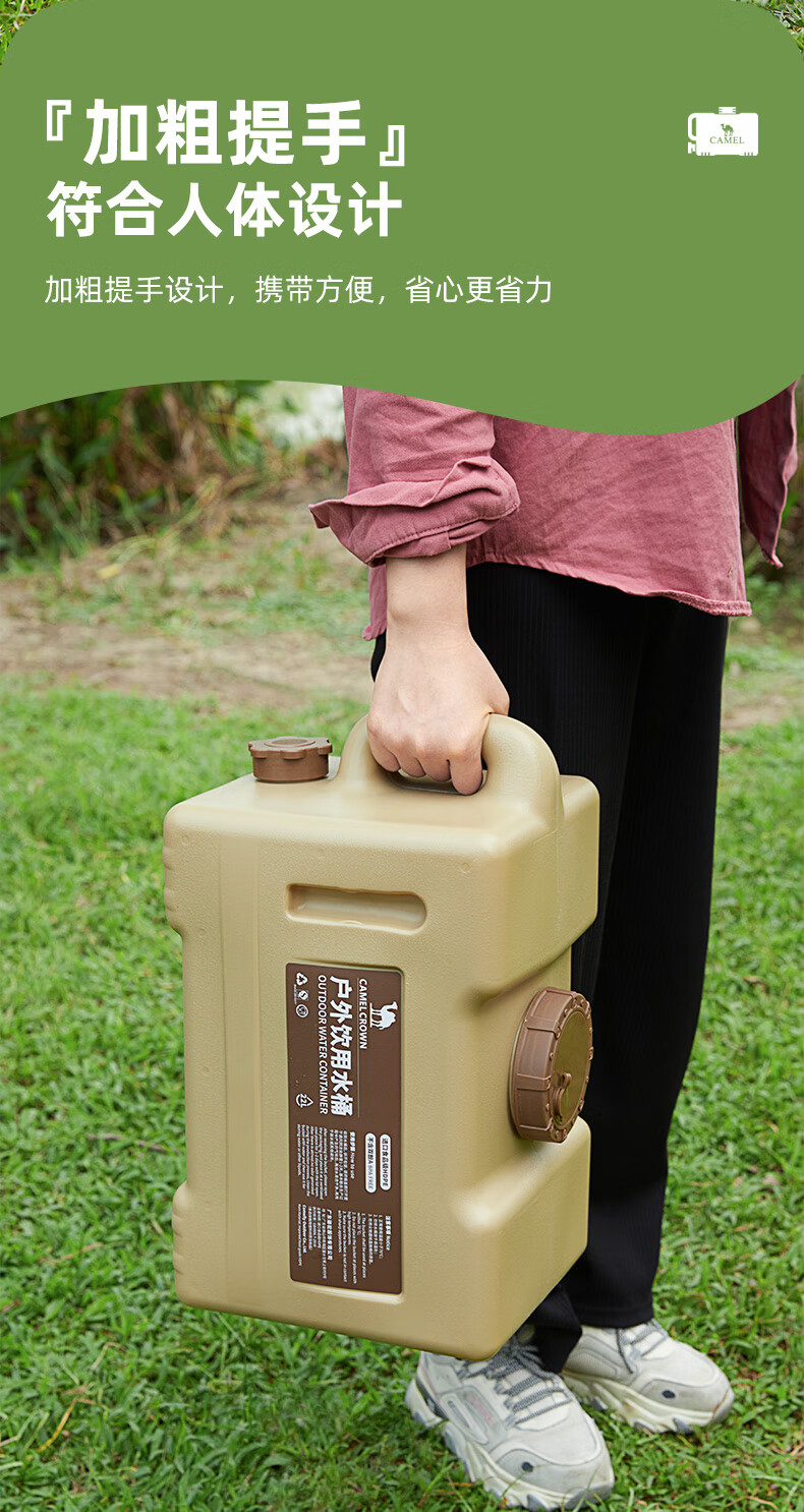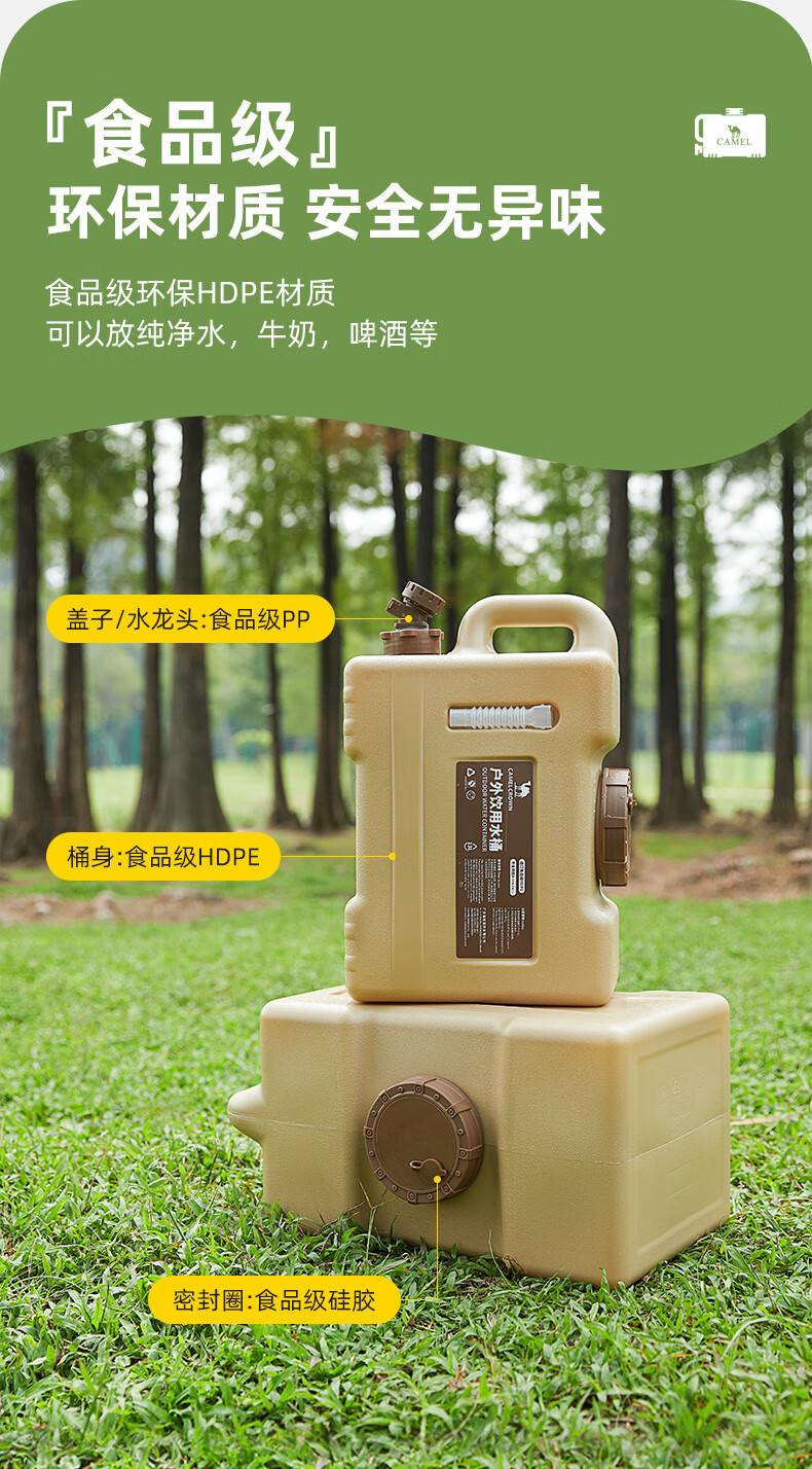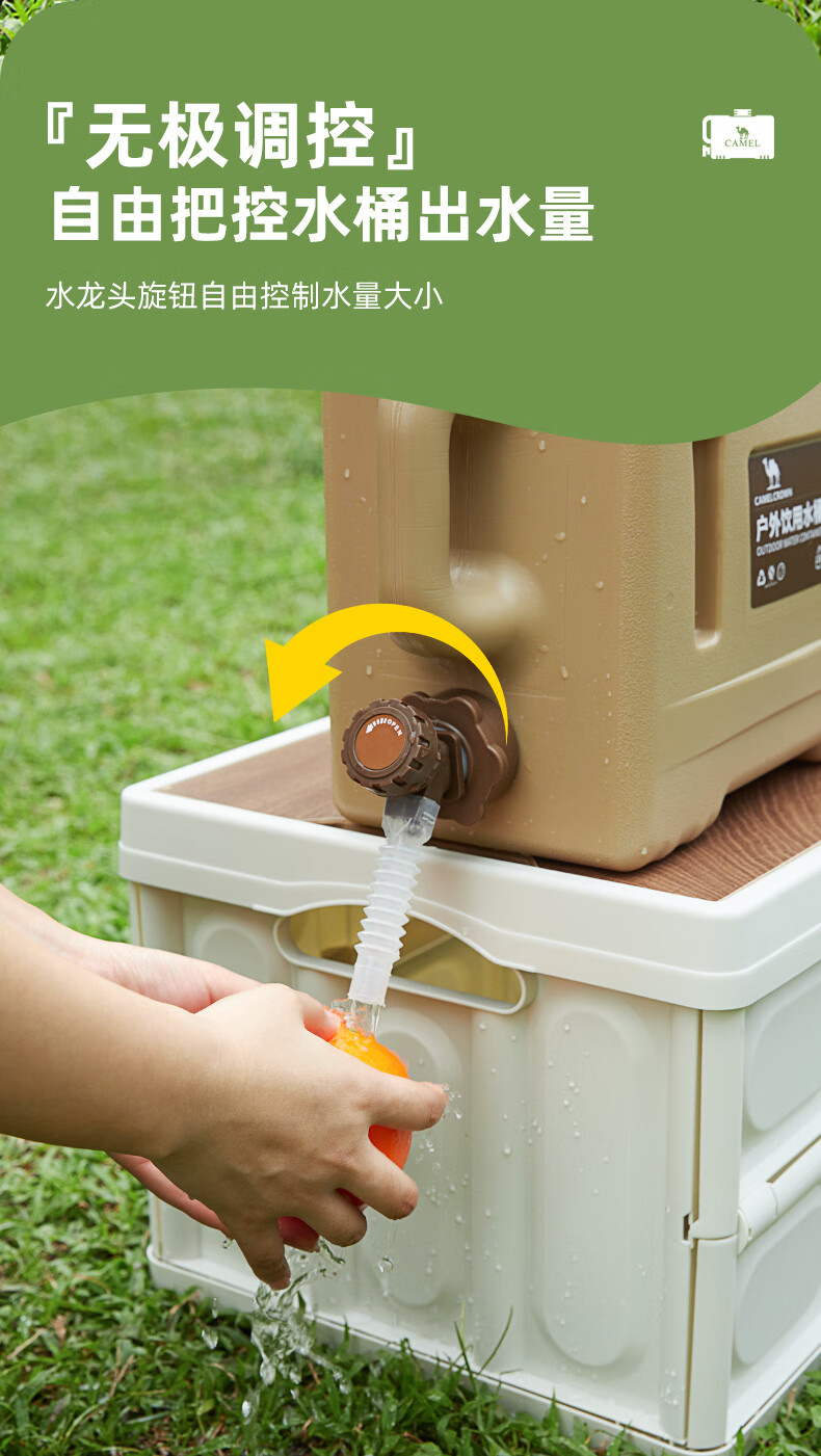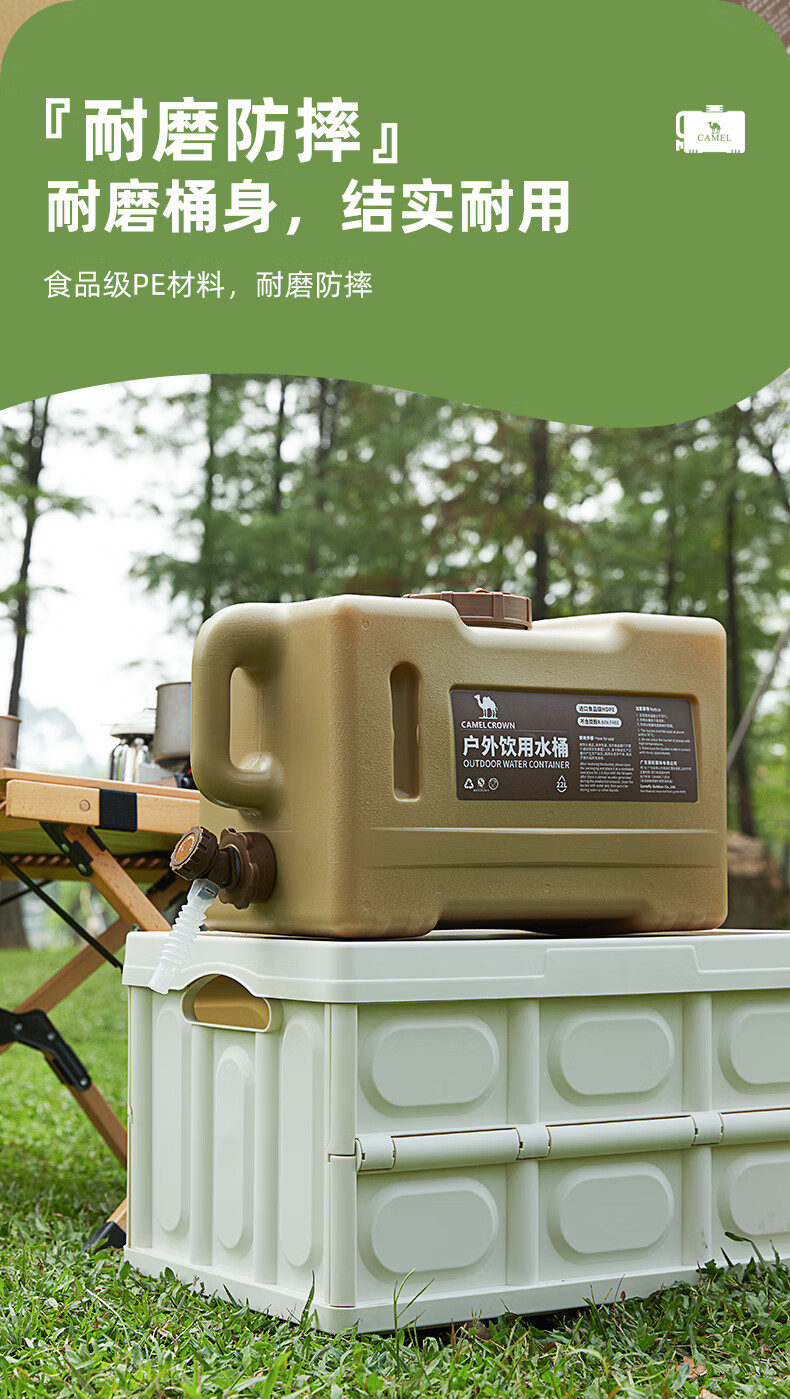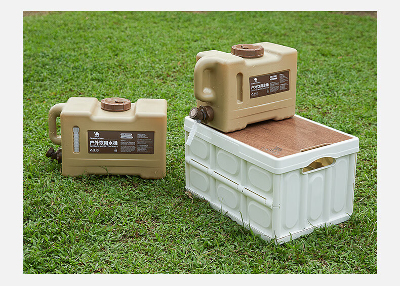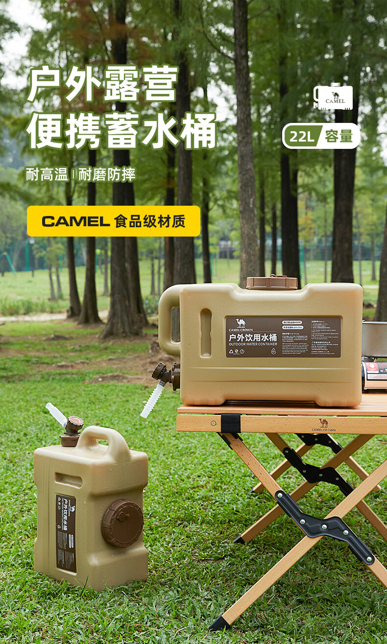 駱駝CAMELCROWN戶外露營儲水桶從林野營燒烤便攜蓄水桶家用大容量帶水龍頭水桶 5968,暖杏色,22L 自營