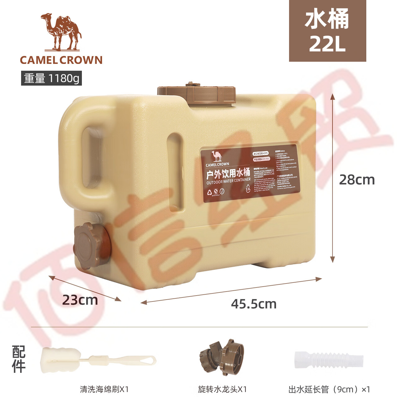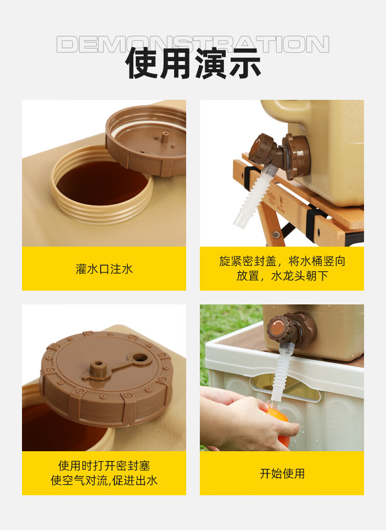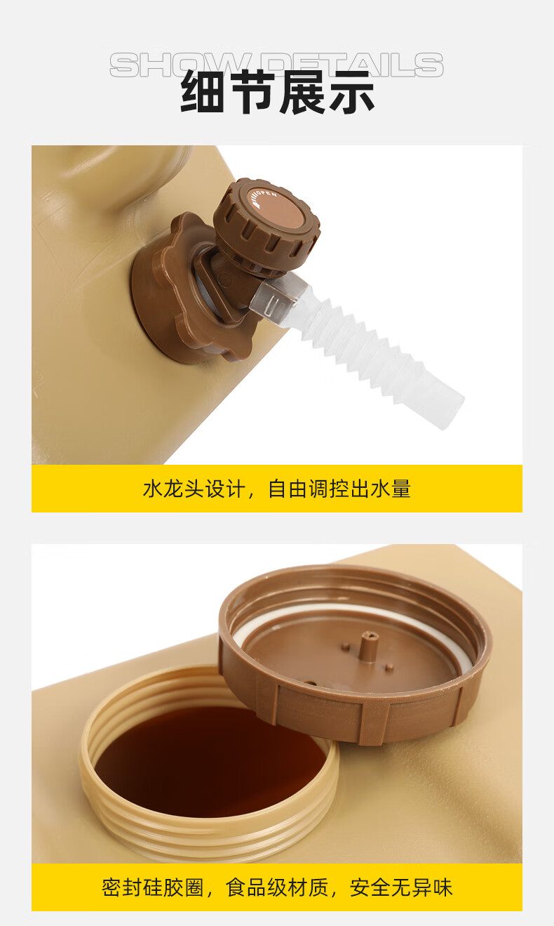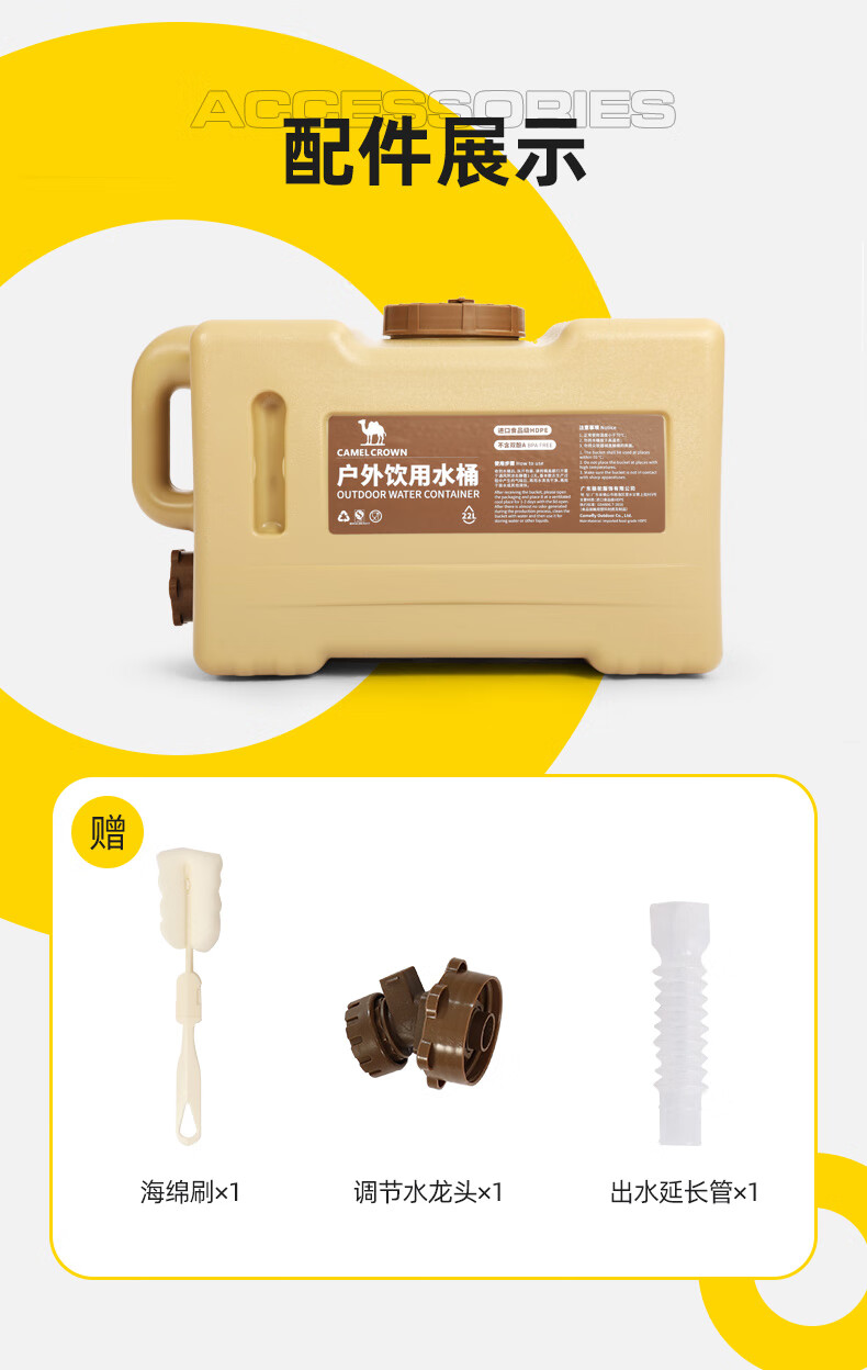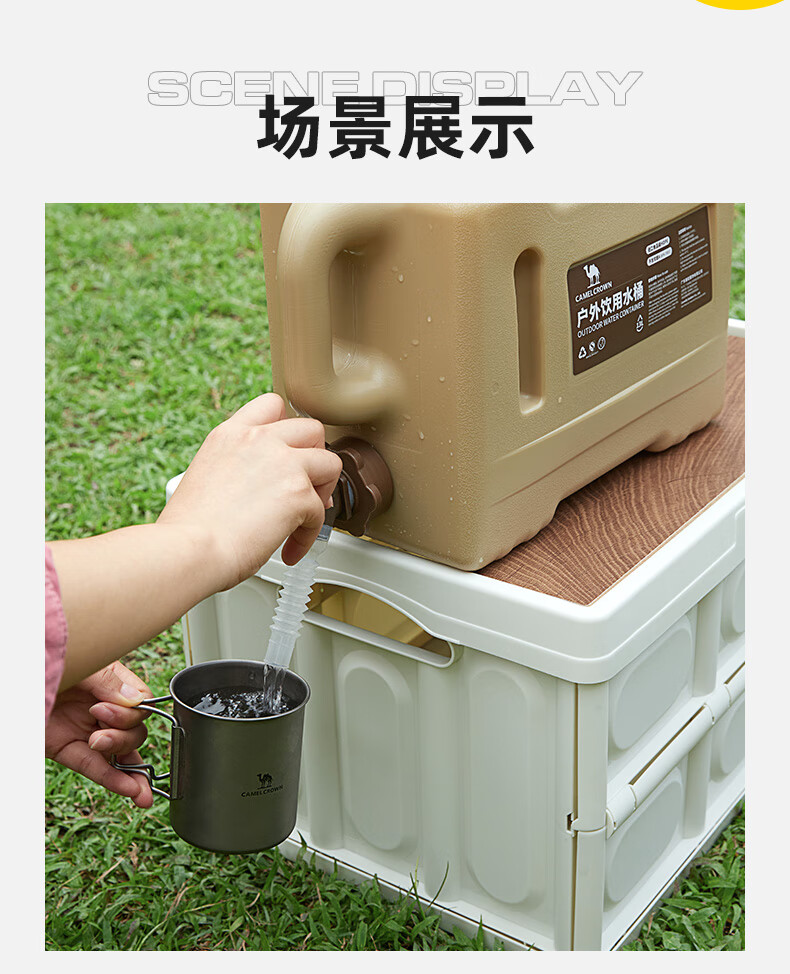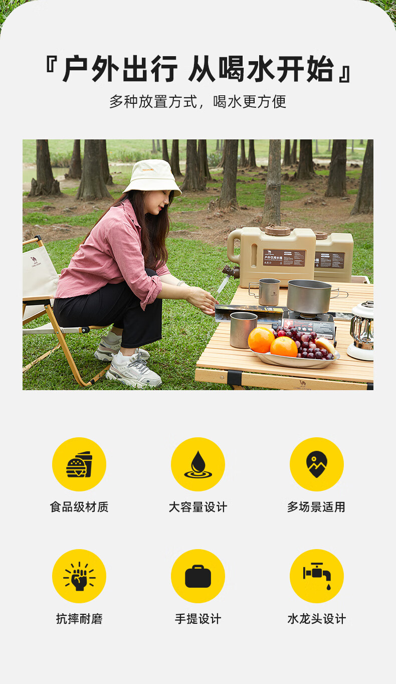 駱駝CAMELCROWN戶外露營儲水桶從林野營燒烤便攜蓄水桶家用大容量帶水龍頭水桶 5968,暖杏色,22L 自營