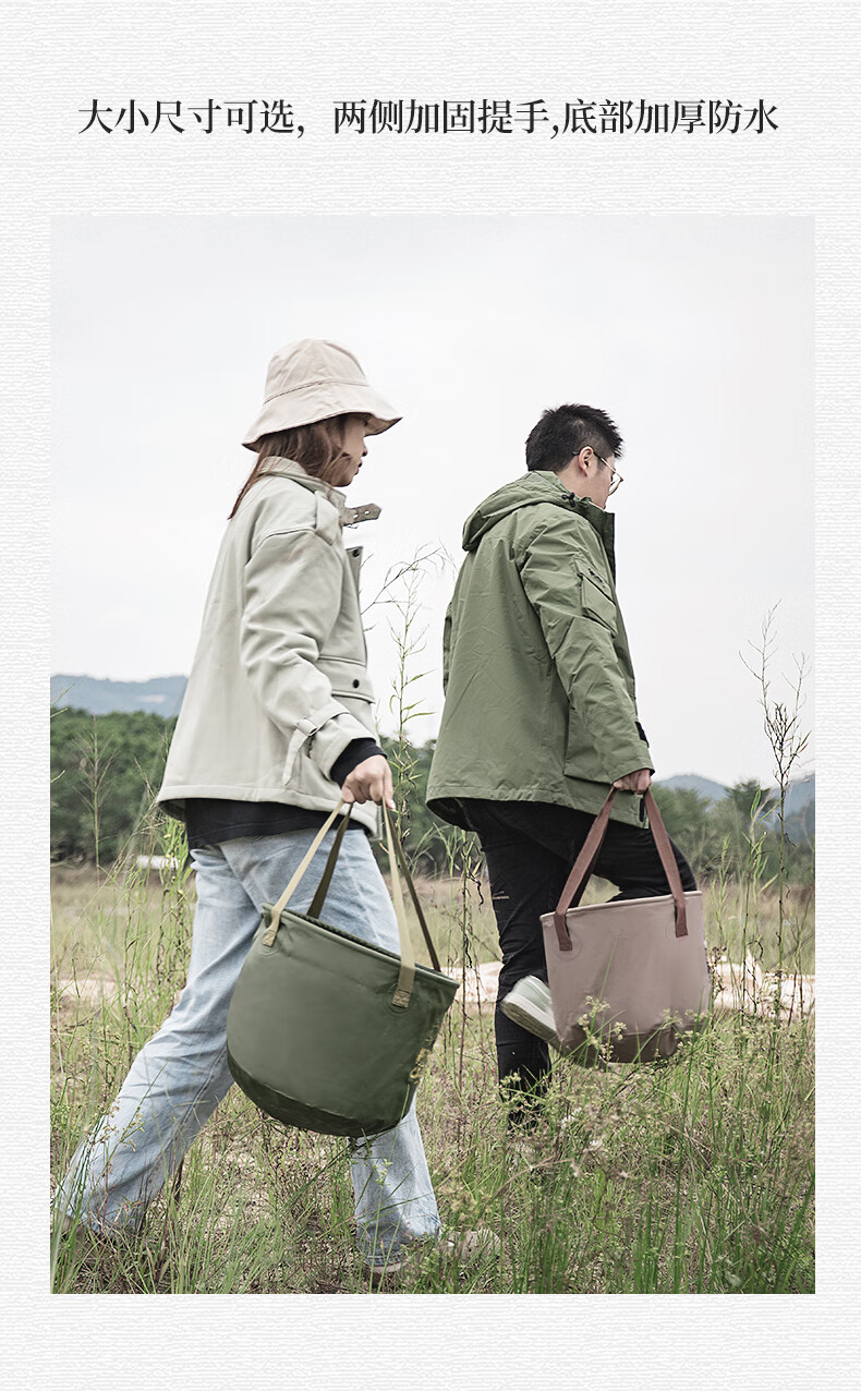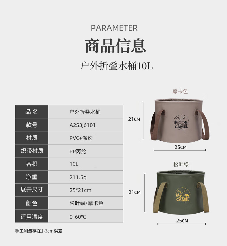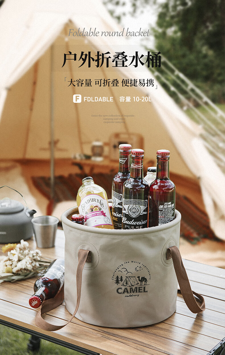 駱駝CAMELCROWN戶外折疊水桶露營燒烤野炊便攜可折裝水桶庭院公園大容量儲水桶 1J32266311,淺咖,13L 自營