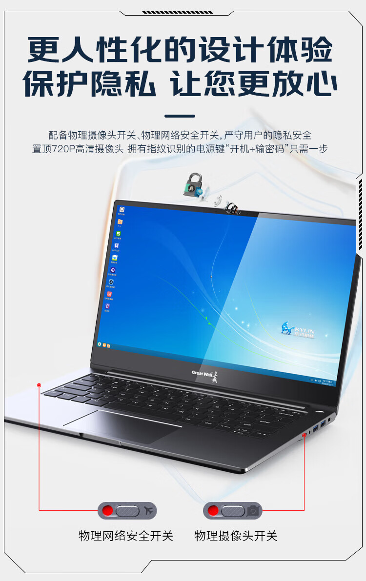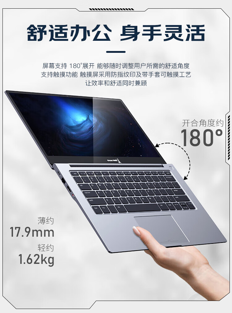 長城(Great Wall)TN140A2 14英寸八核CPU辦公輕薄筆記本電腦(D2000八核/8G/256G) 自營