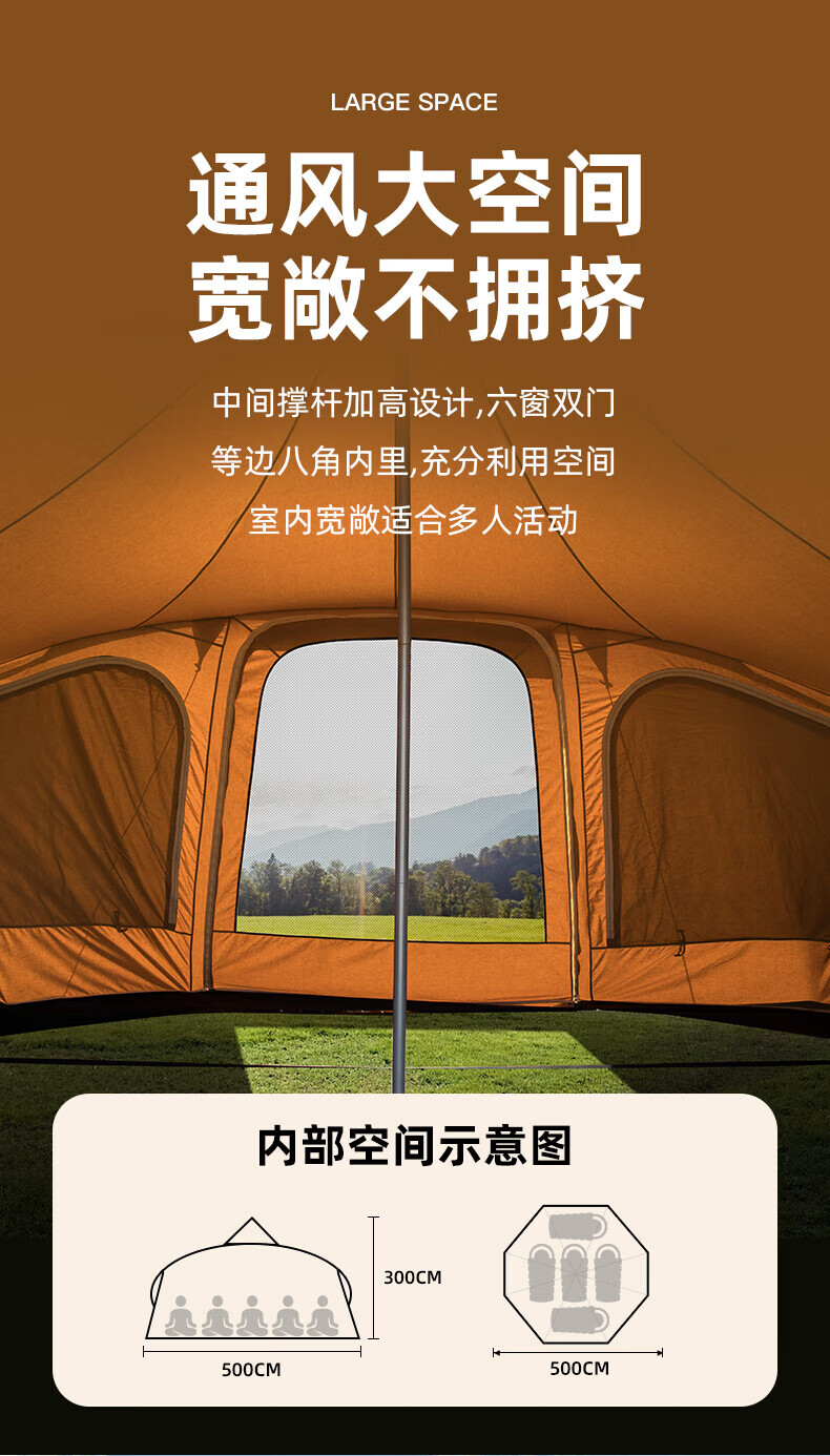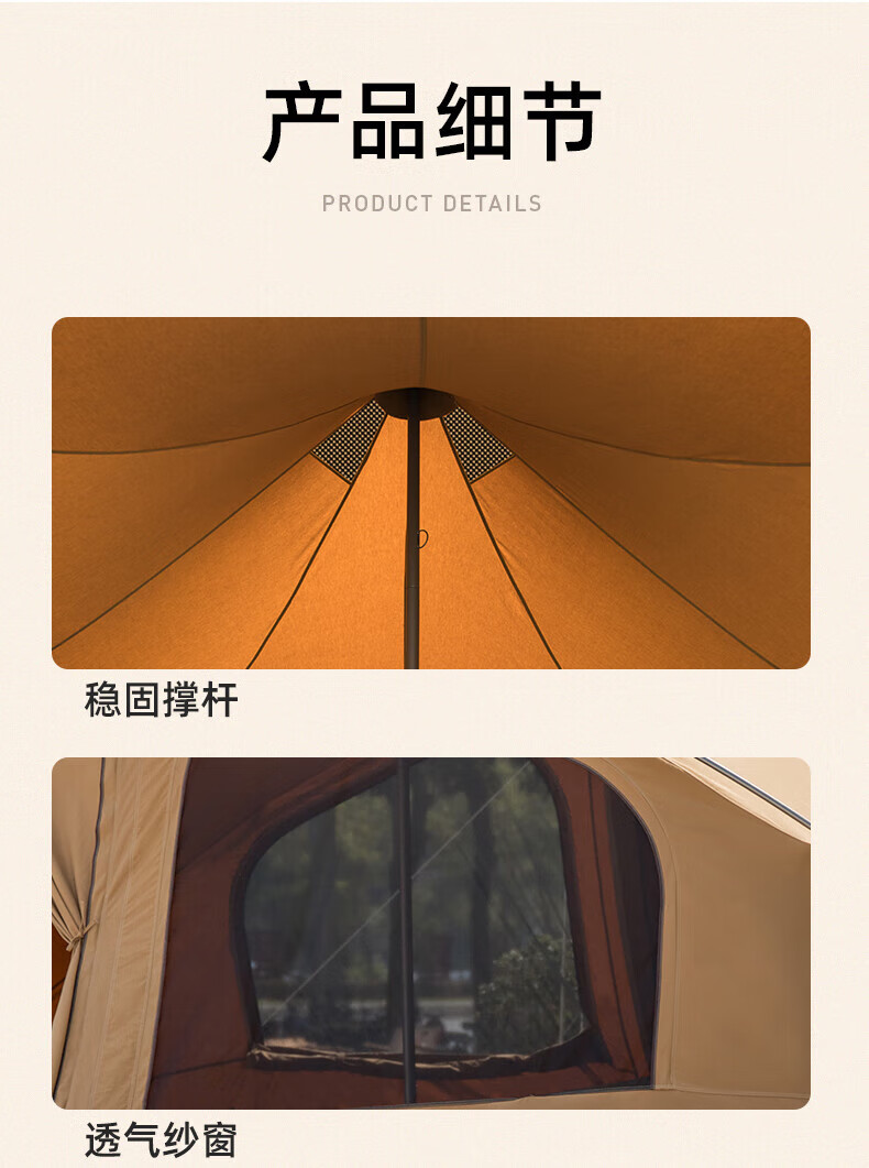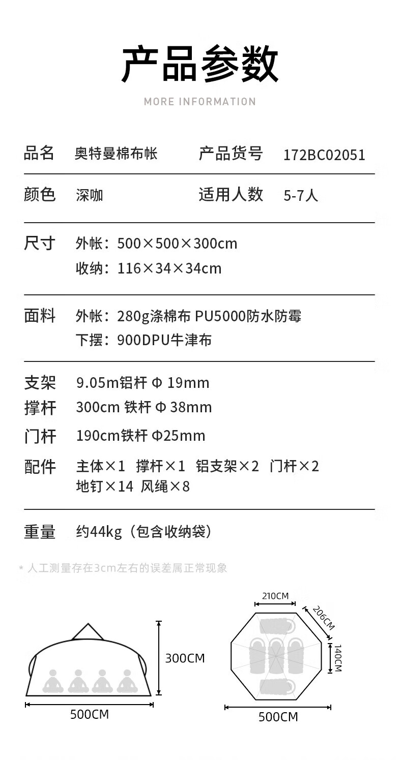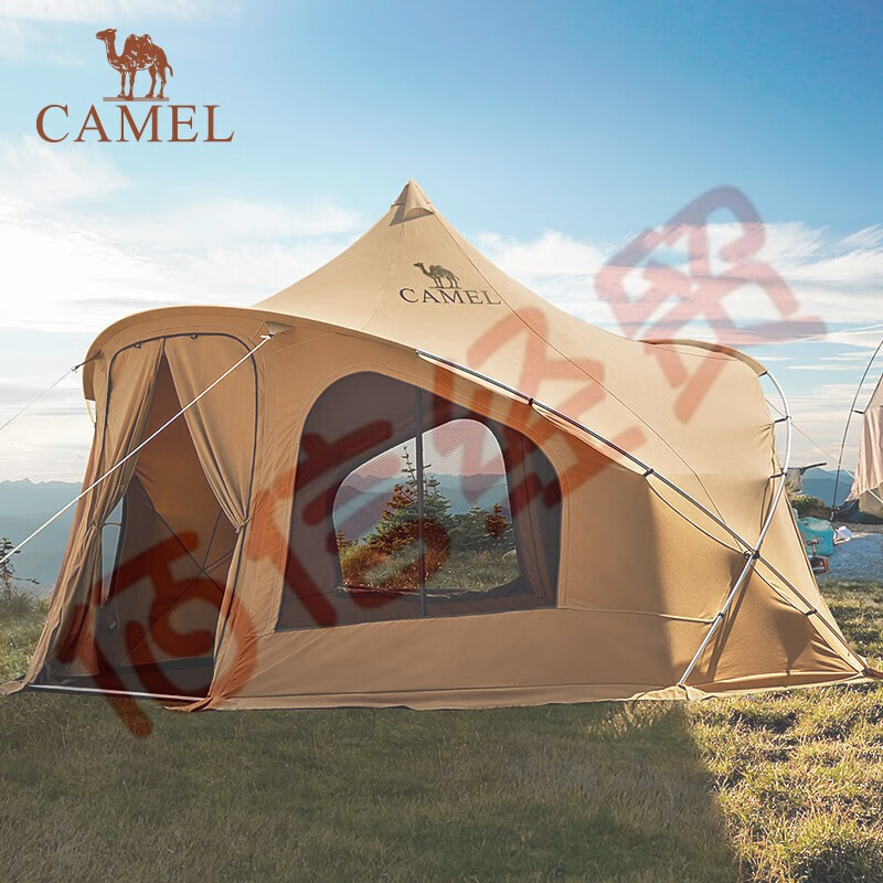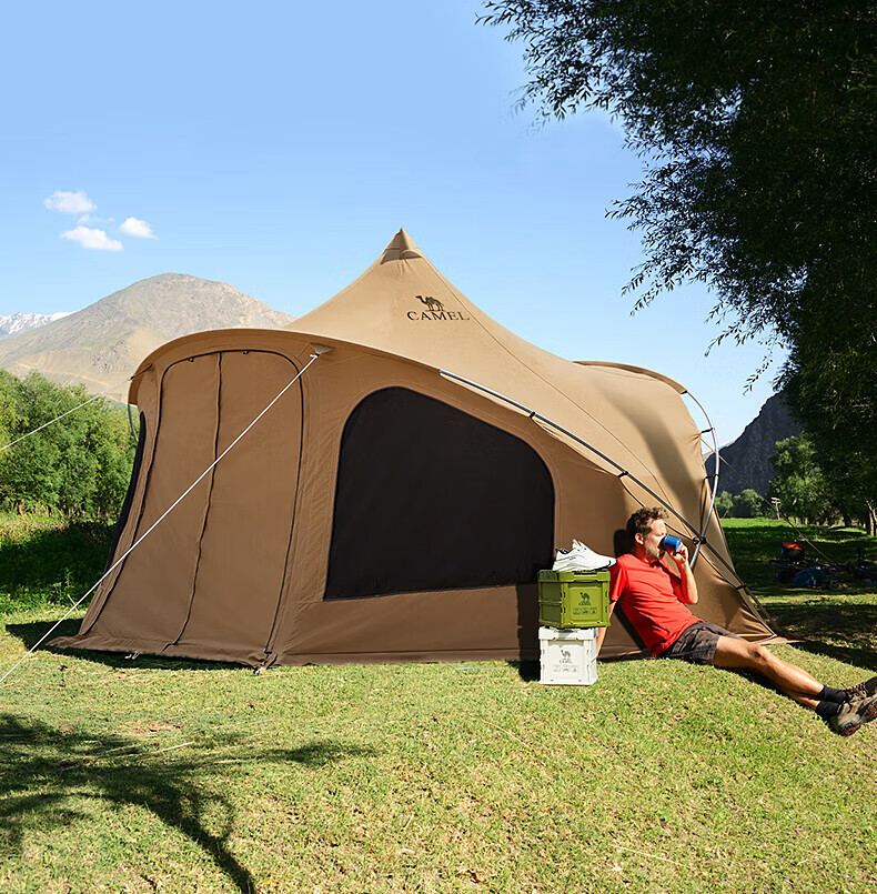 駱駝(CAMEL)【奧特曼】戶外棉布帳篷大空間精致露營防水防霉營地帳篷裝備 172BC02051,深咖色 自營