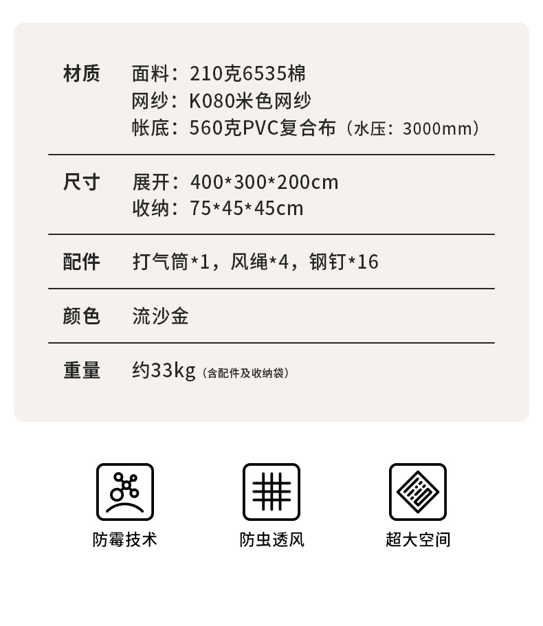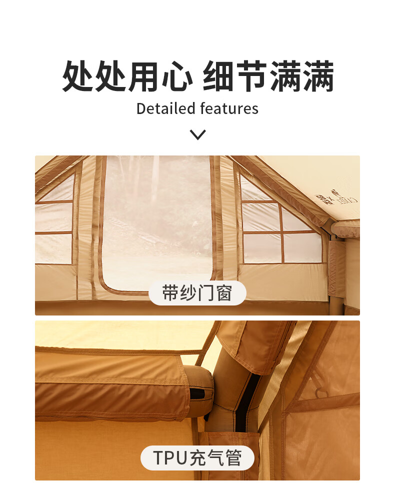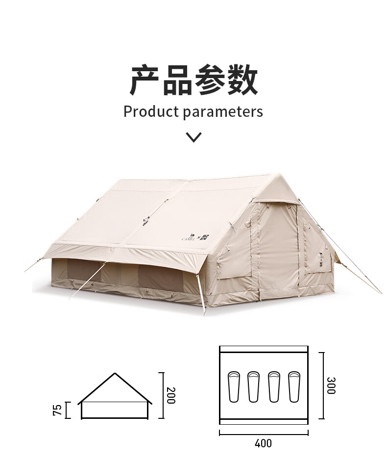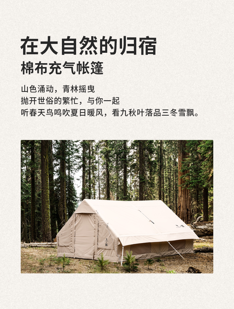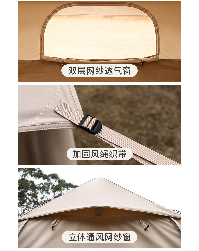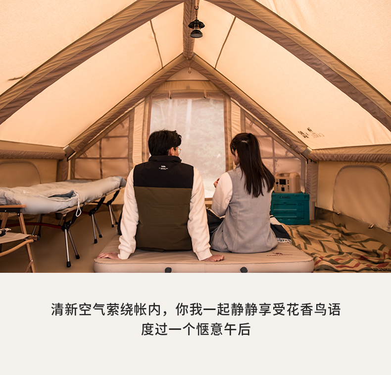 駱駝(CAMEL)【山居Ⅱ】帳篷戶外精致露營棉布充氣帳篷折疊5-8人印第安帳篷 1142253037,流沙金 自營