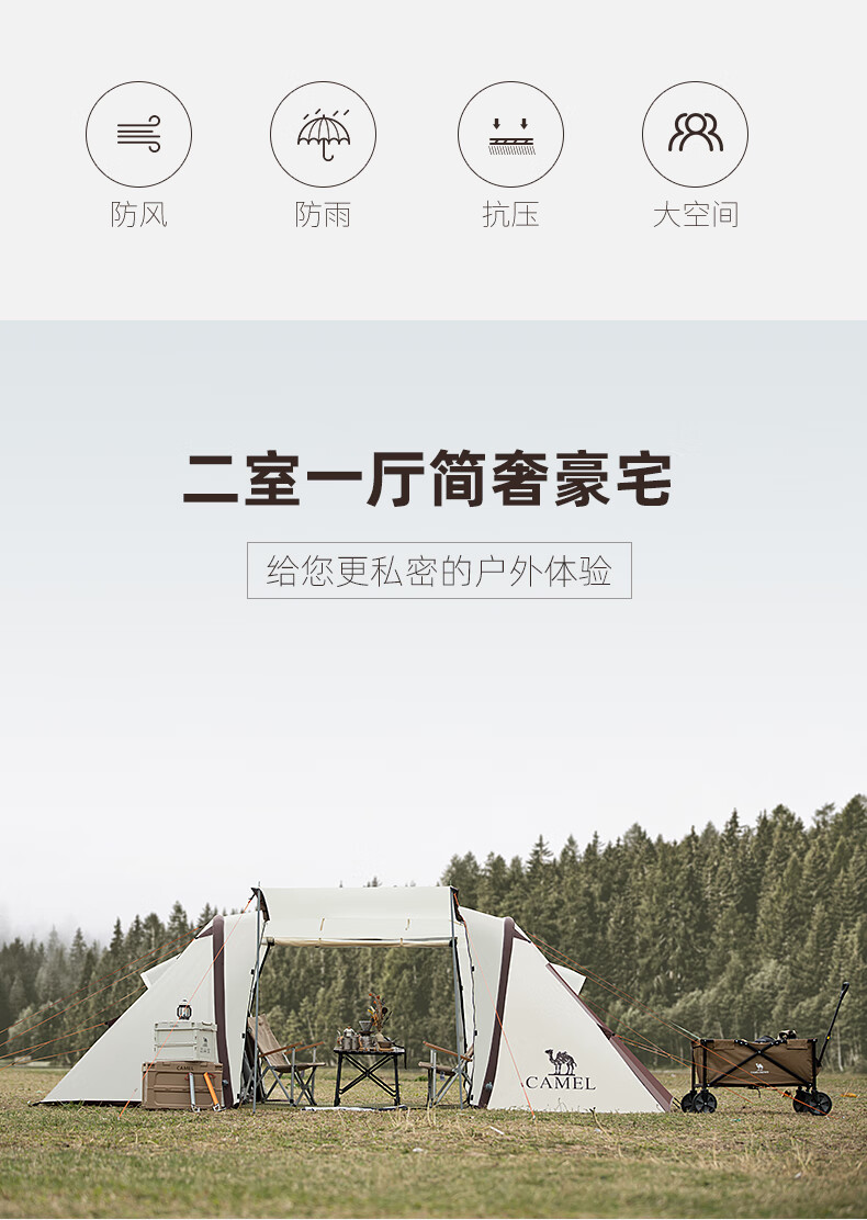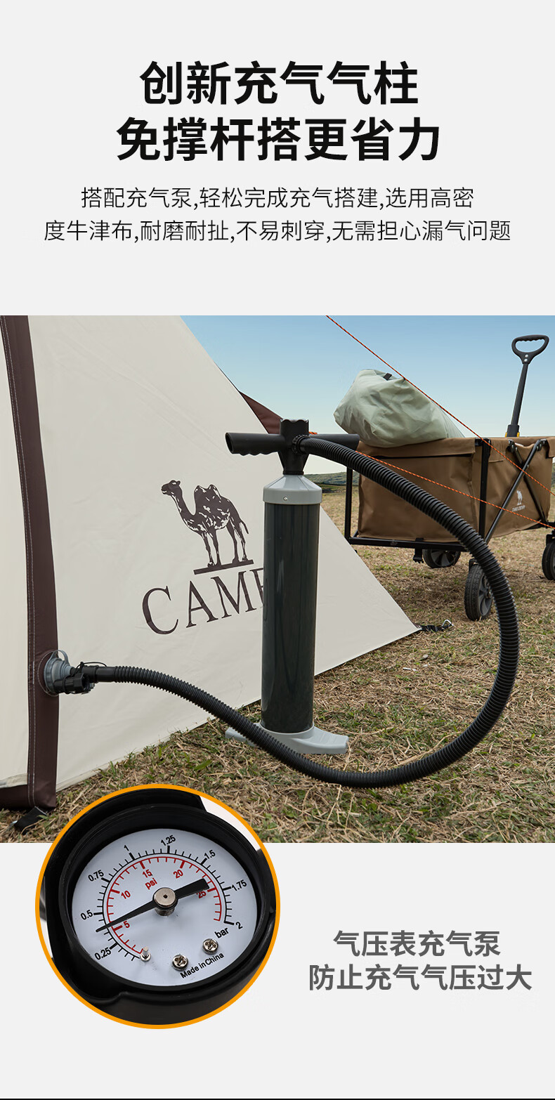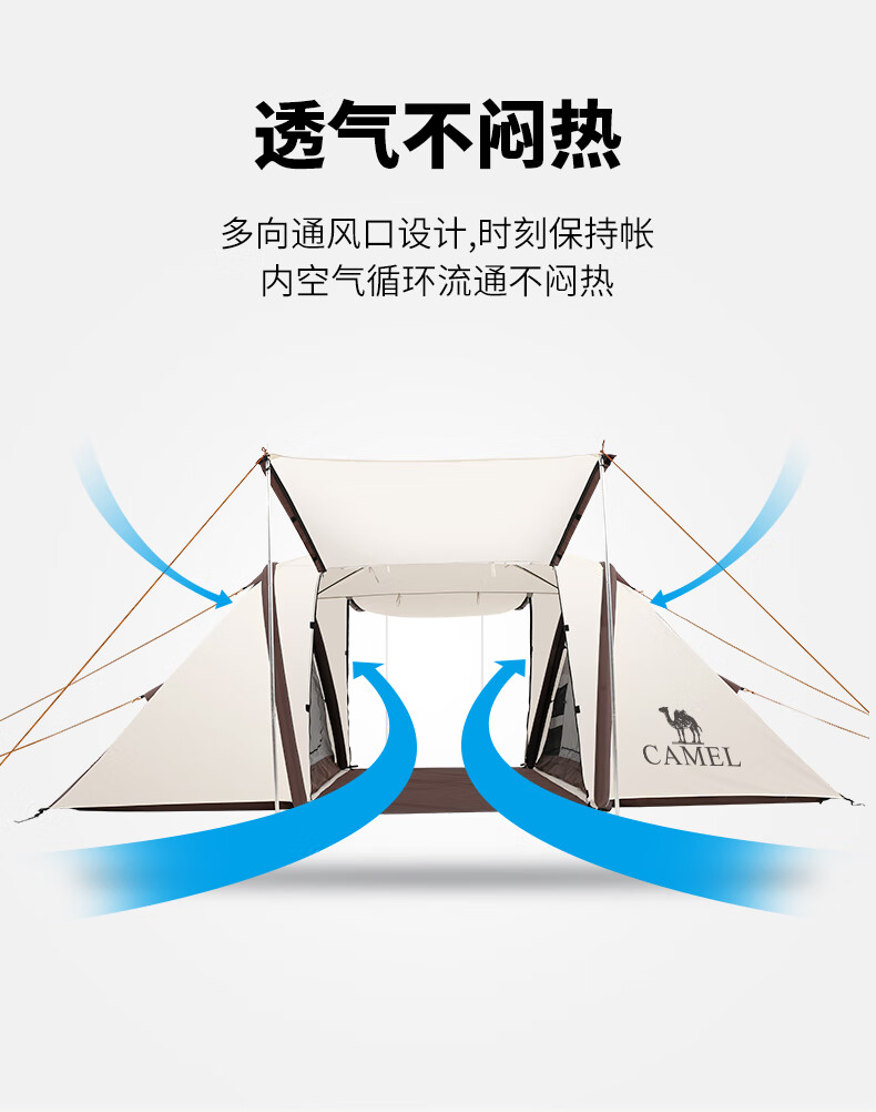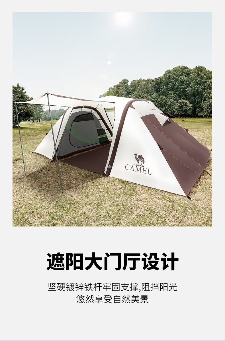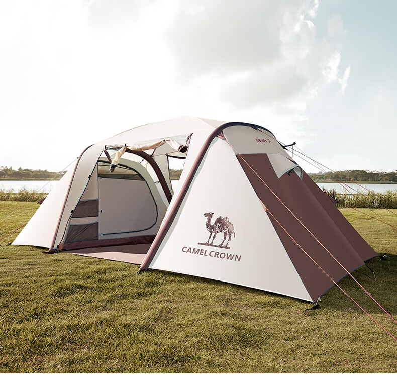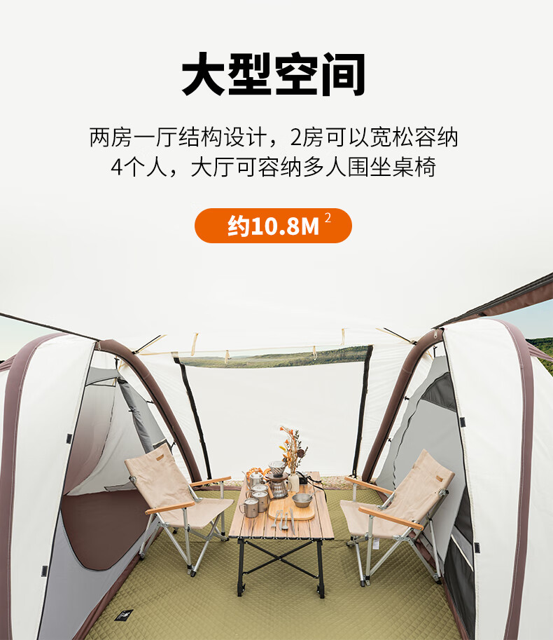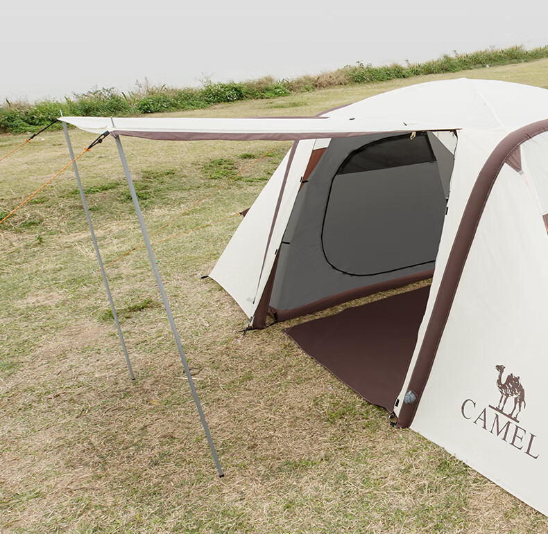 駱駝(CAMEL)【獵戶座I】戶外充氣帳篷精致露營兩室一廳遮陽防雨野營便攜帳篷 V103,米白/咖啡(雙極星) 自營