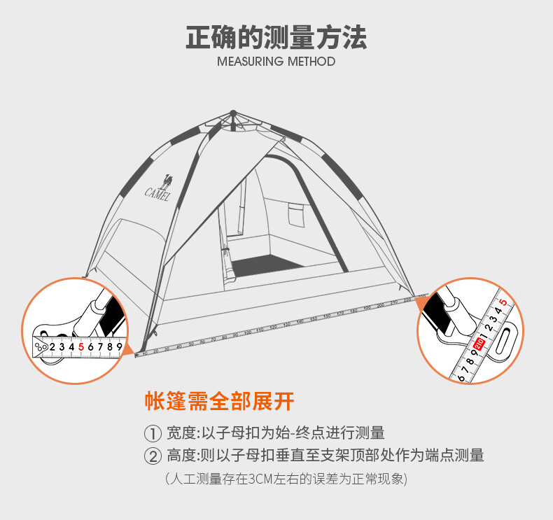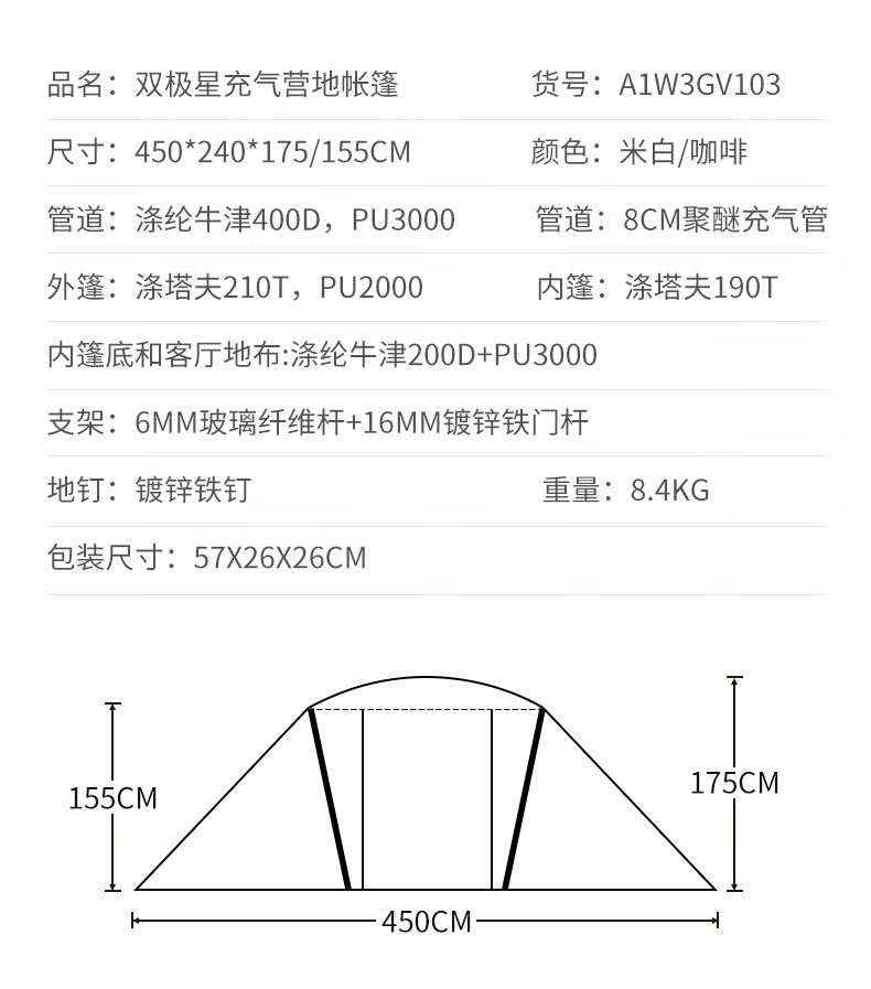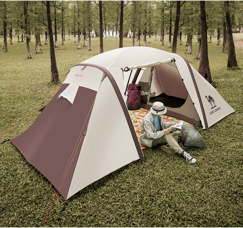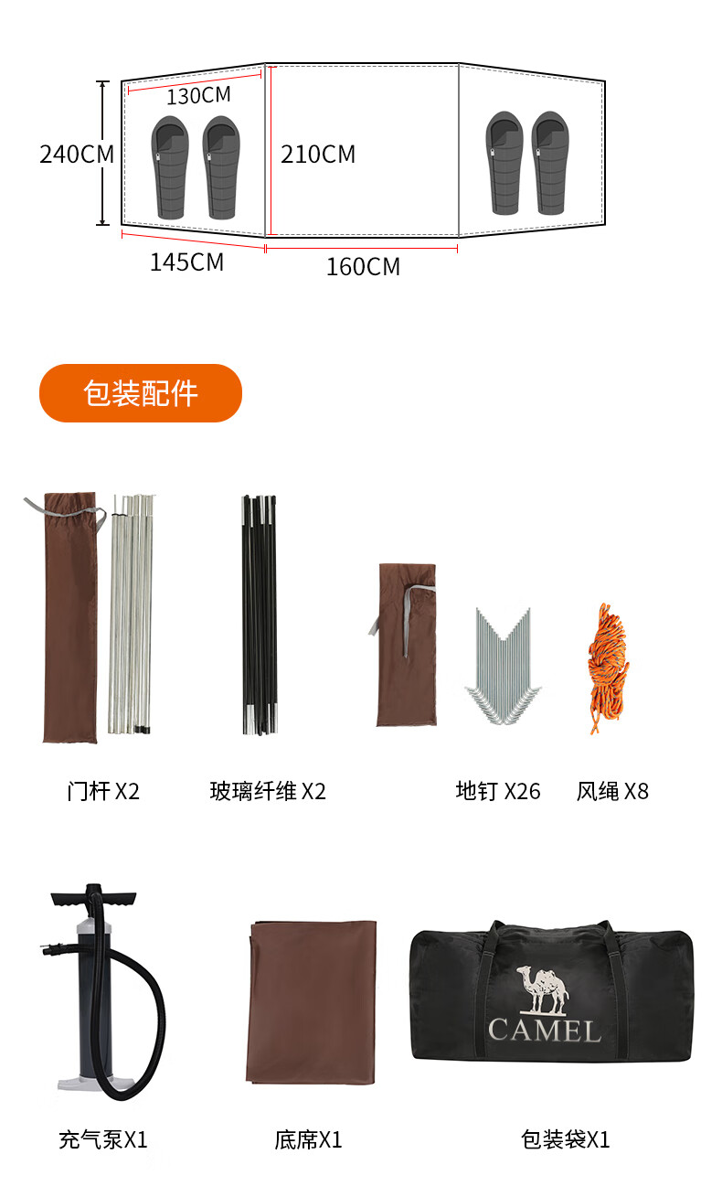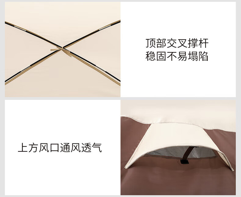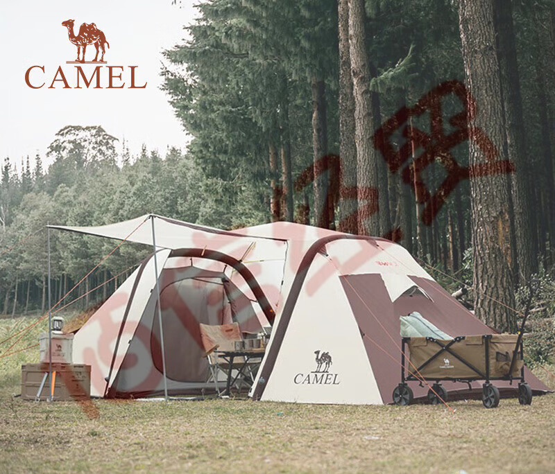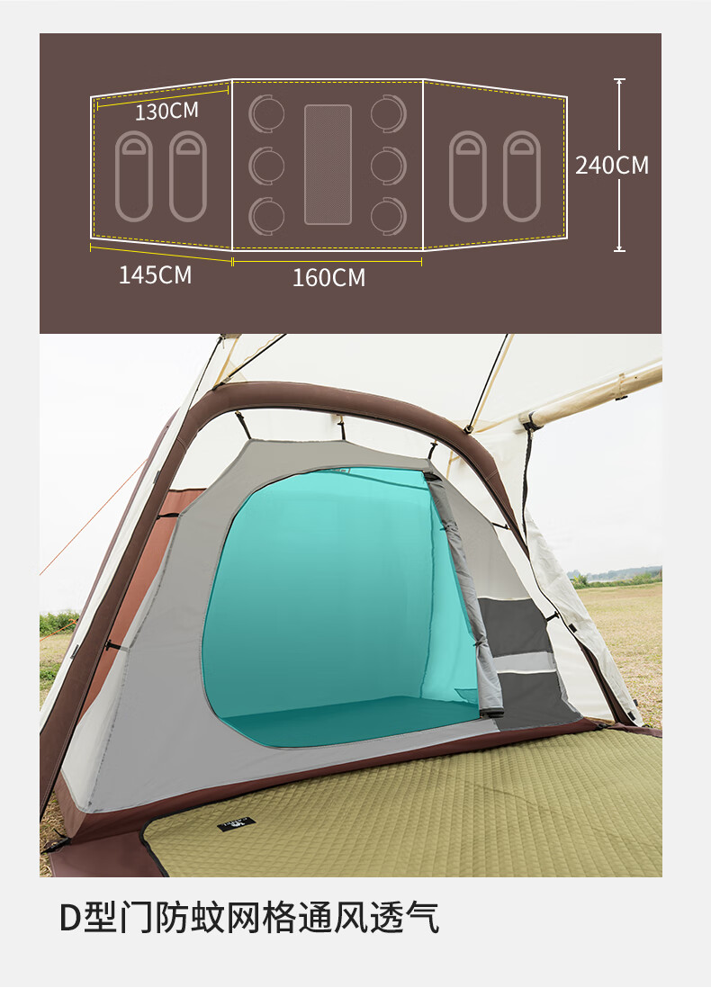 駱駝(CAMEL)【獵戶座I】戶外充氣帳篷精致露營兩室一廳遮陽防雨野營便攜帳篷 V103,米白/咖啡(雙極星) 自營