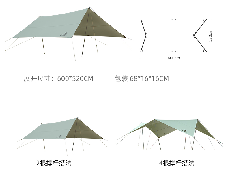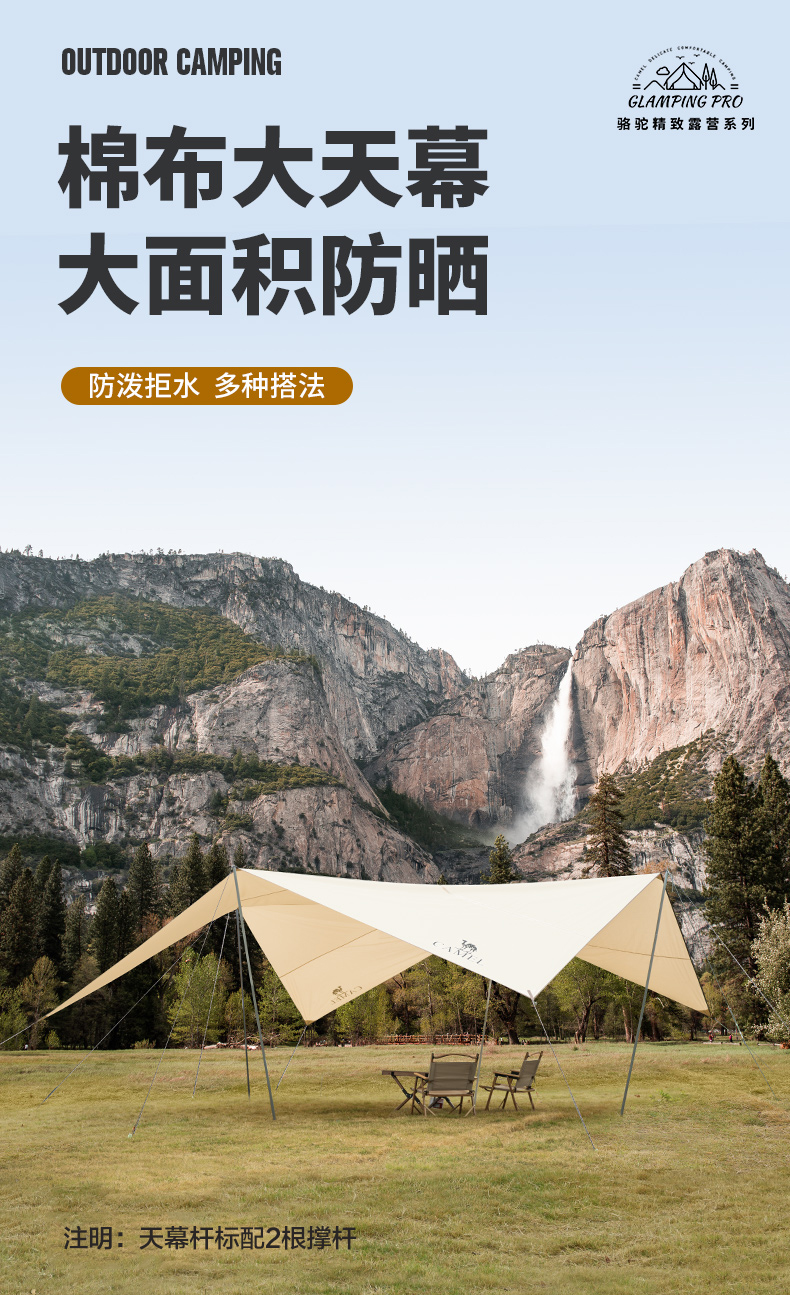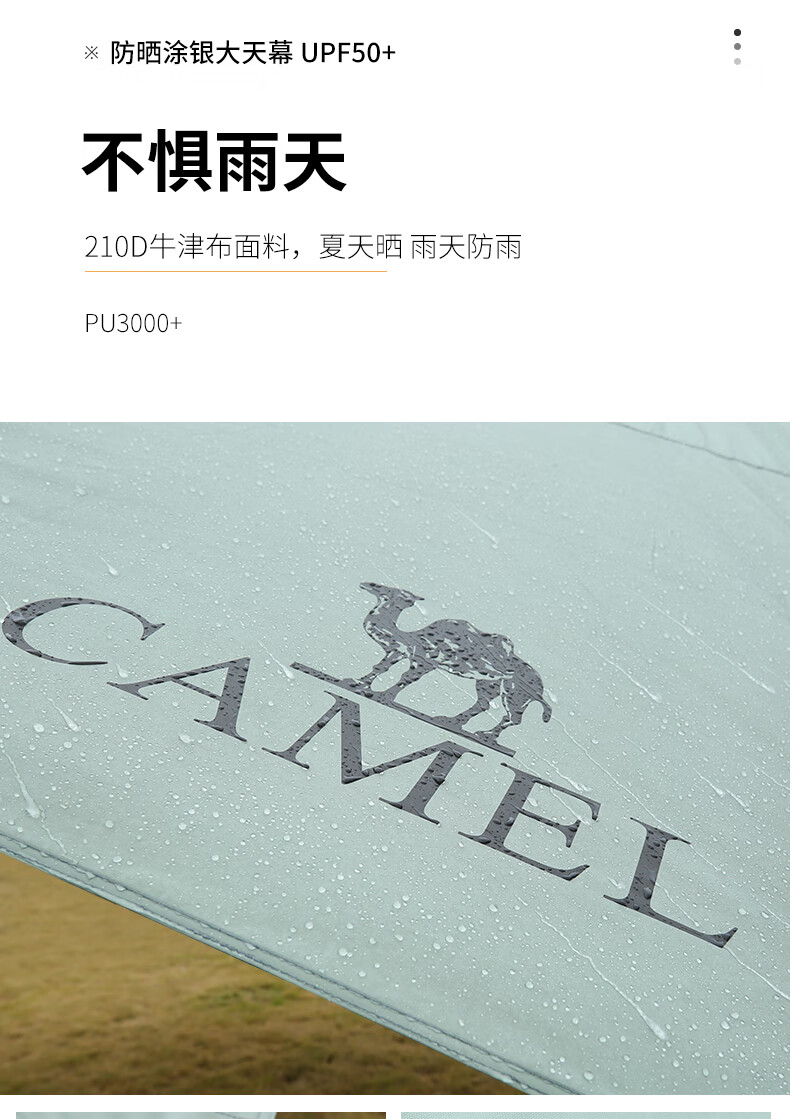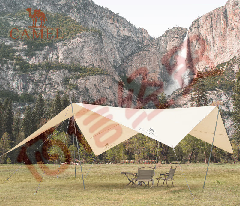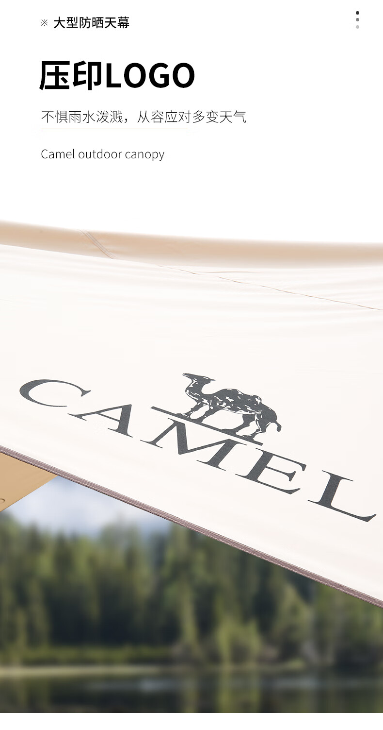駱駝帳篷戶(hù)外精致露營(yíng)涂銀防曬UPF50+棉布大型遮陽(yáng)天幕帳篷便攜式防雨野炊野營(yíng)遮陽(yáng)棚 1519,流沙金(滌棉布) 自營(yíng)