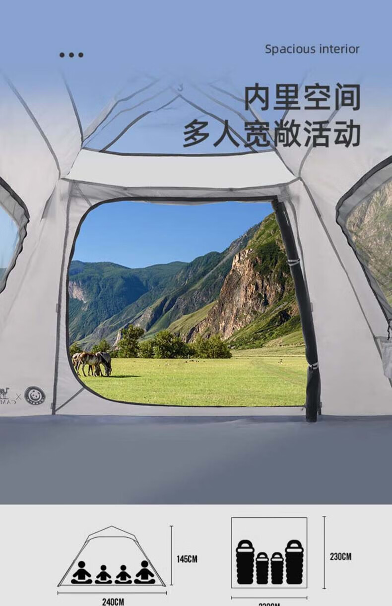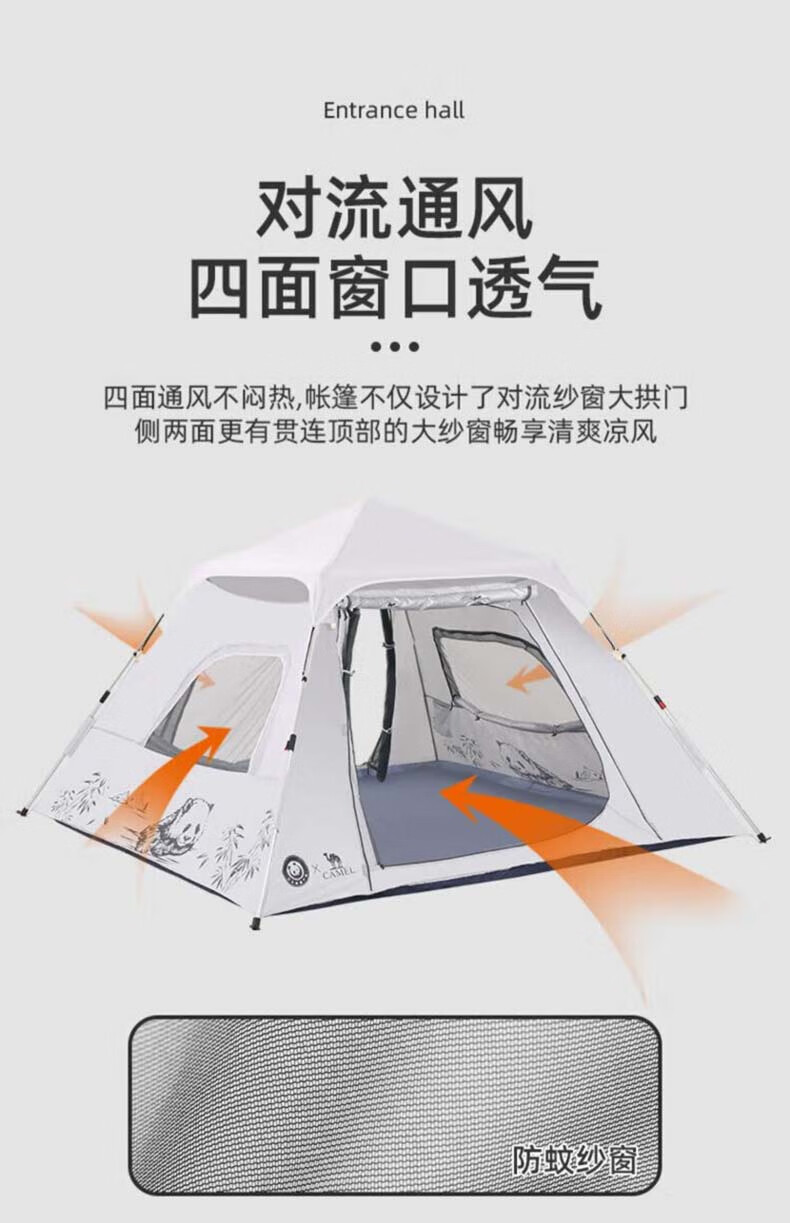駱駝(CAMEL)[熊貓]戶外帳篷便攜式全自動(dòng)露營(yíng)野餐野外防雨防曬速開雙門天幕帳 米白色【UPF50+涂銀】雙門彈壓 自營(yíng)