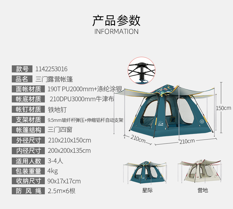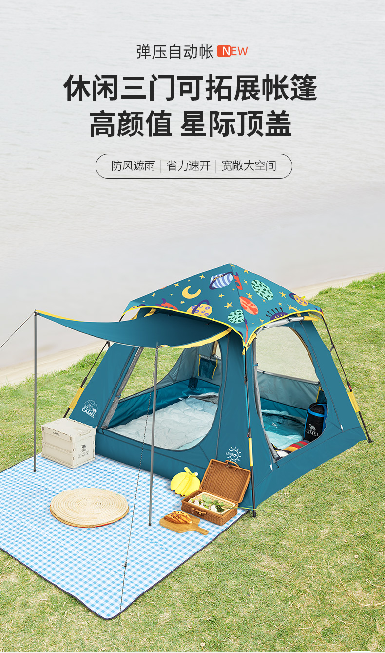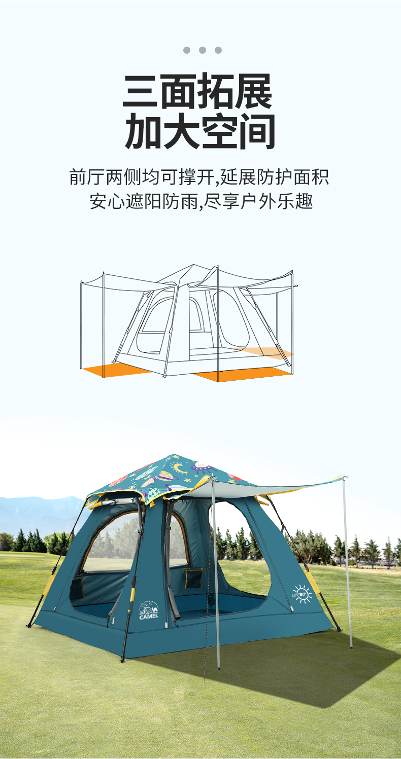 駱駝(CAMEL)【牧云】戶外露營(yíng)全自動(dòng)帳篷三門便攜折疊野營(yíng)野餐防雨防曬UPF50+ 營(yíng)地(印花款;UPF50+) 自營(yíng)