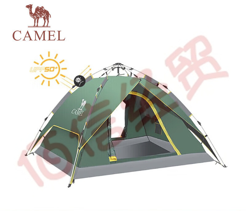 駱駝(CAMEL)戶外黑膠帳篷便攜式折疊全自動(dòng)加厚野餐野營(yíng)雙人防曬防雨 A1S3NA111-3,軍綠 自營(yíng)