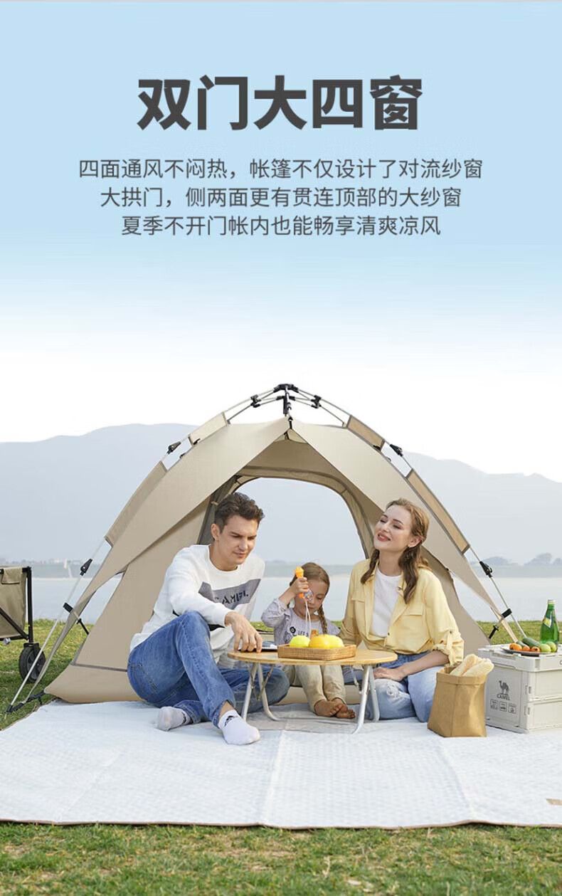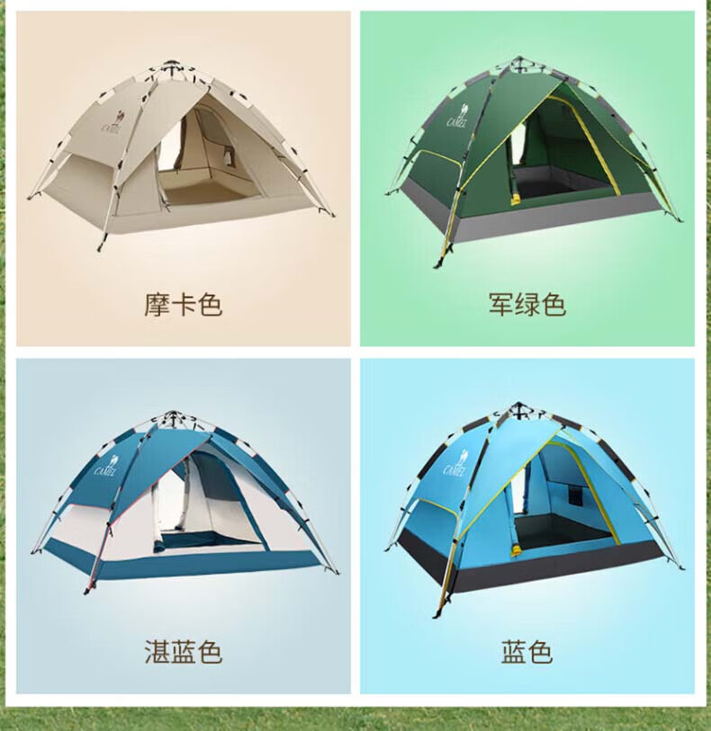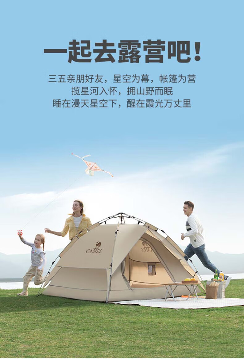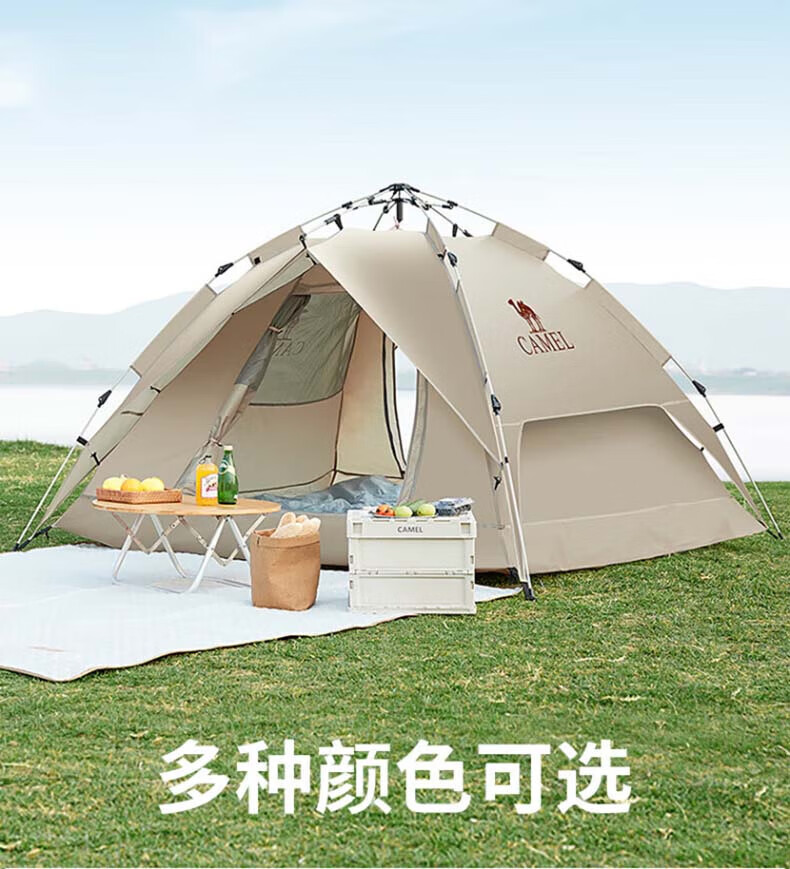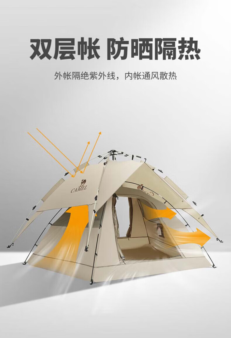 駱駝(CAMEL)【液壓帳篷】戶外露營自動彈開野餐便攜式折疊雙層防曬防雨3-4人 A111-1,軍綠(升級防曬版) 自營
