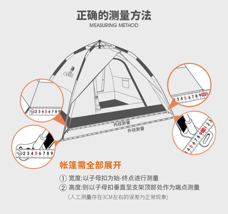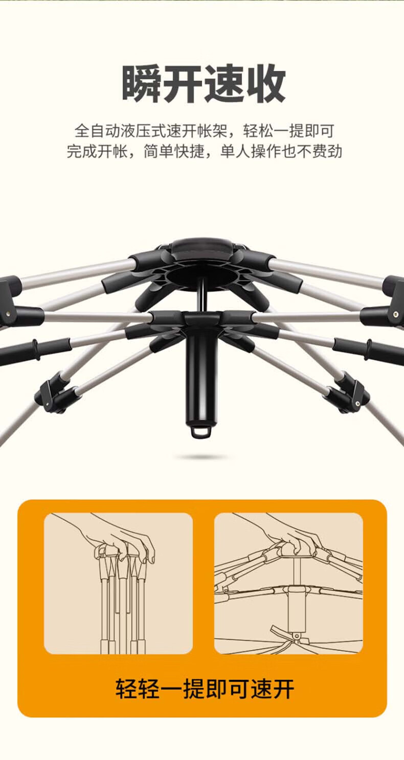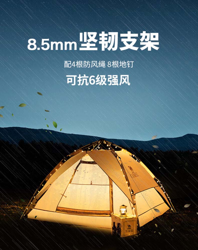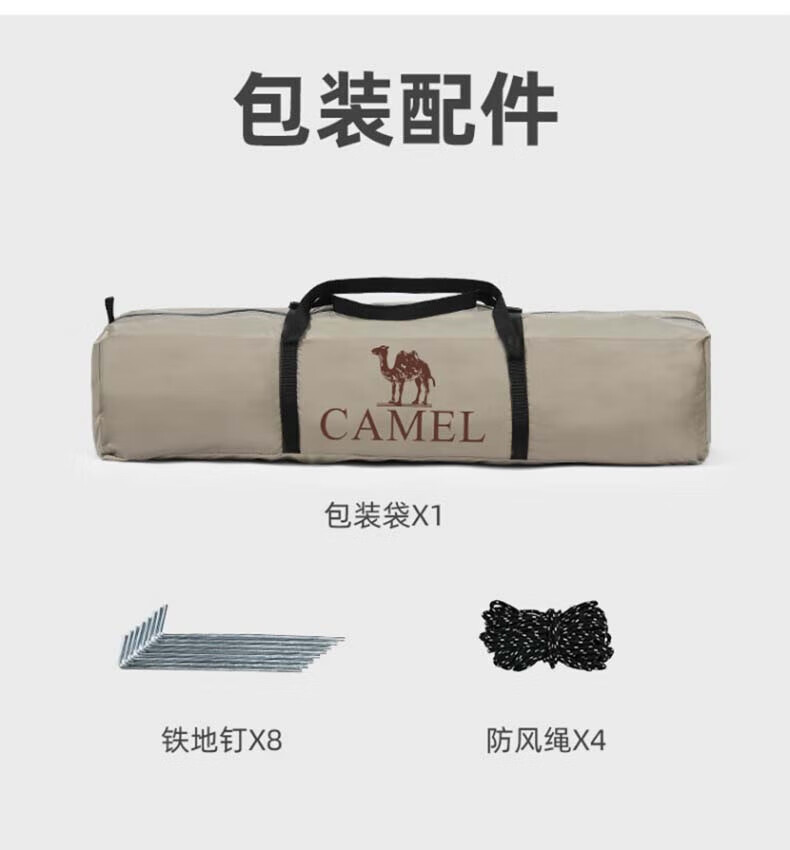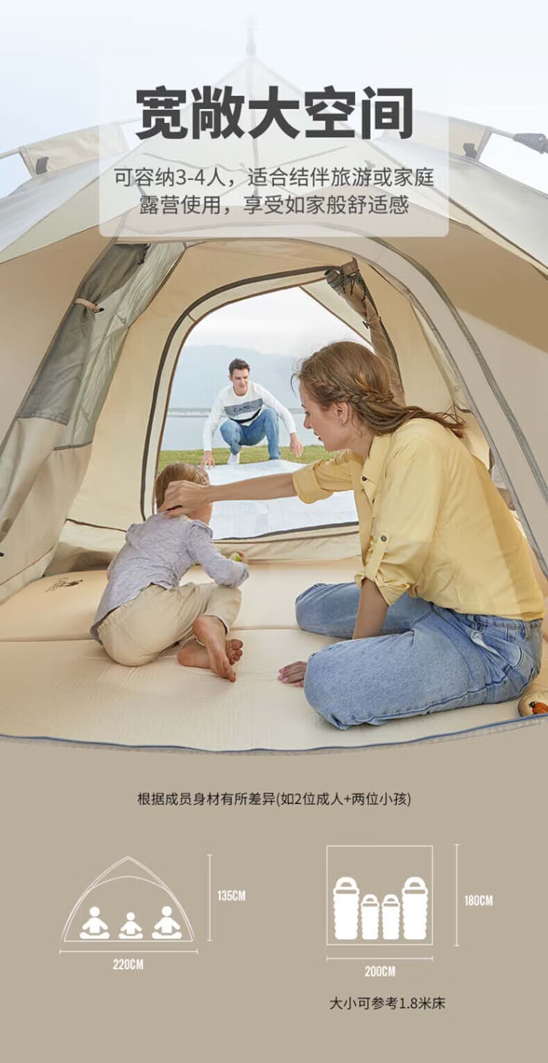 駱駝(CAMEL)【液壓帳篷】戶外露營自動彈開野餐便攜式折疊雙層防曬防雨3-4人 A111-1,軍綠(升級防曬版) 自營