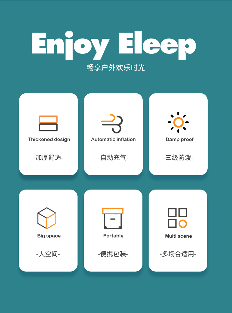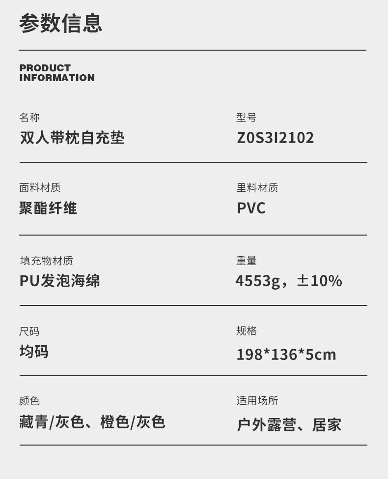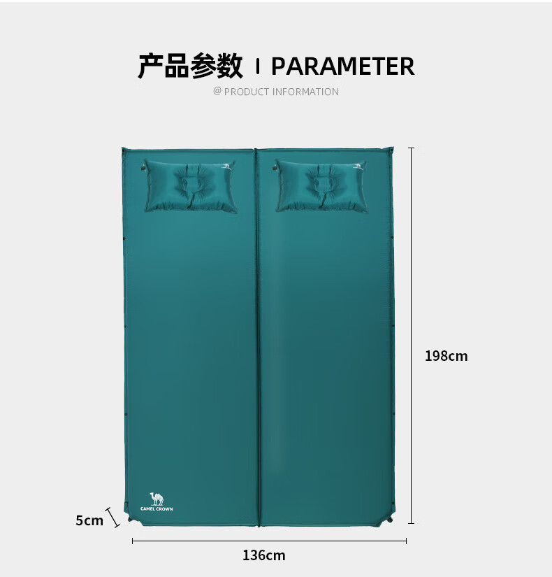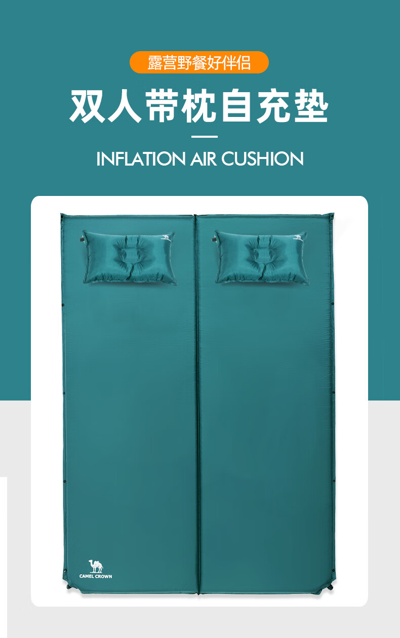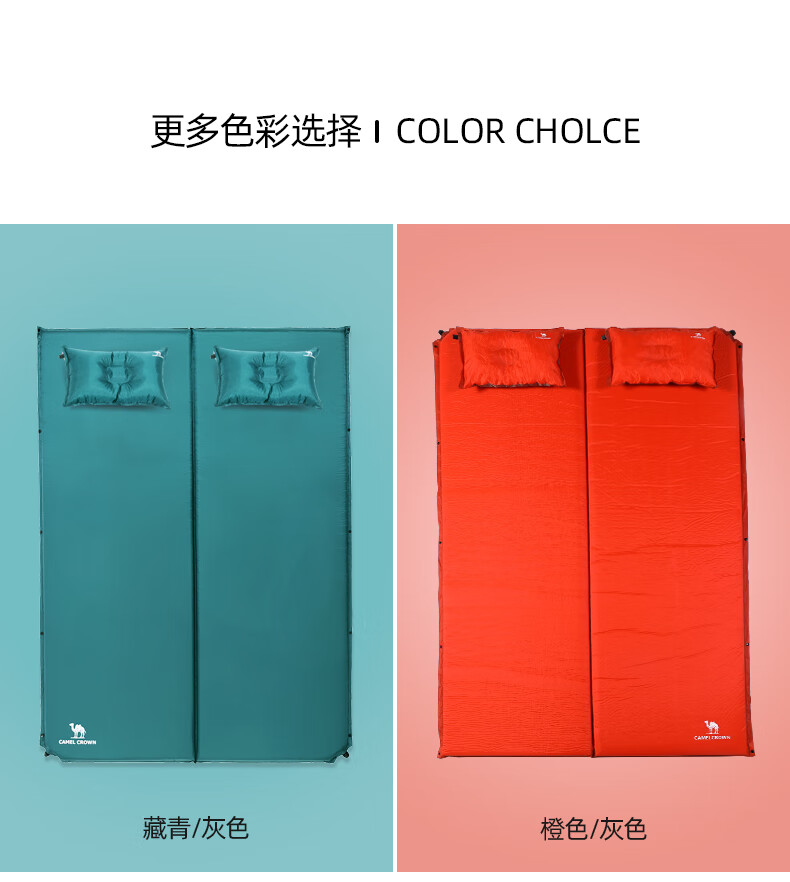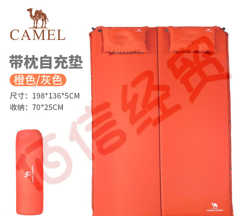 駱駝(CAMEL)戶外充氣墊露營(yíng)野餐防潮墊帳篷底墊雙人帶枕自充墊床墊地墊 橙色/灰色 自營(yíng)