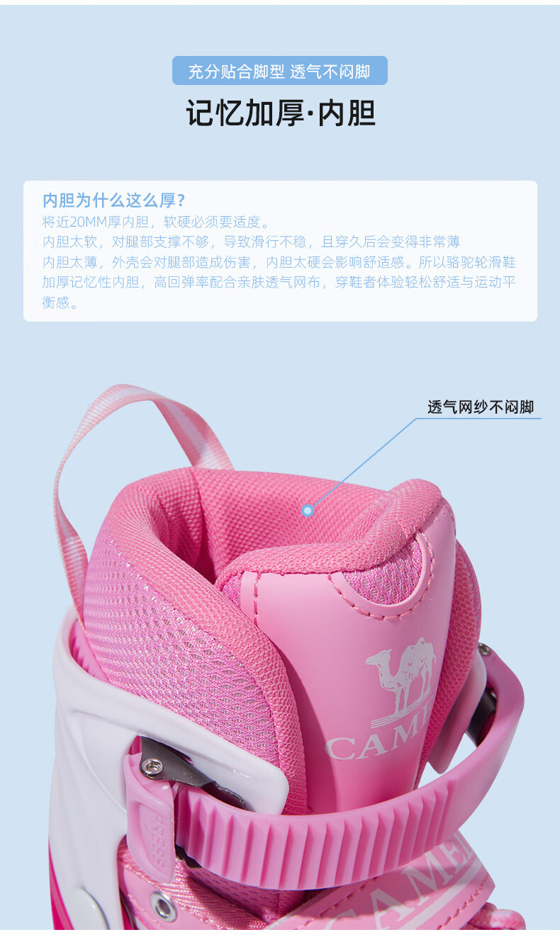 駱駝(CAMEL)溜冰鞋兒童初學(xué)者青少年專業(yè)輪滑鞋男童滑冰旱冰鞋女童可調(diào)節(jié) A1223816813,粉色(送輪滑包) M(34-37碼) 自營