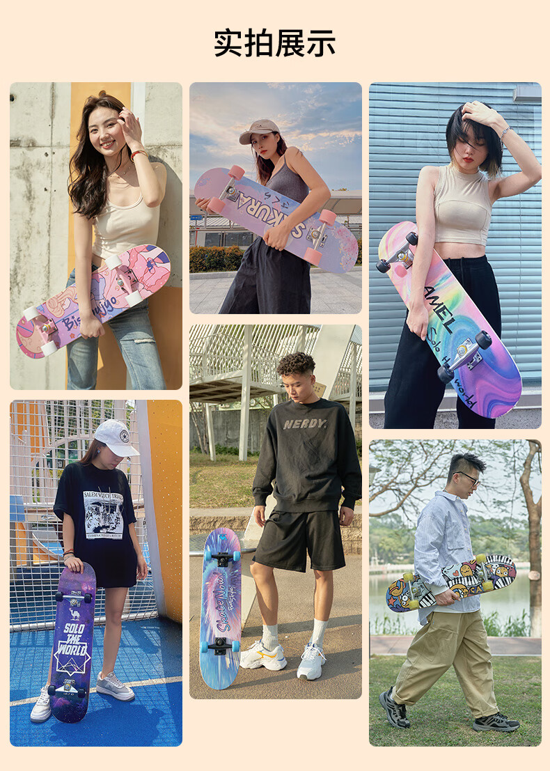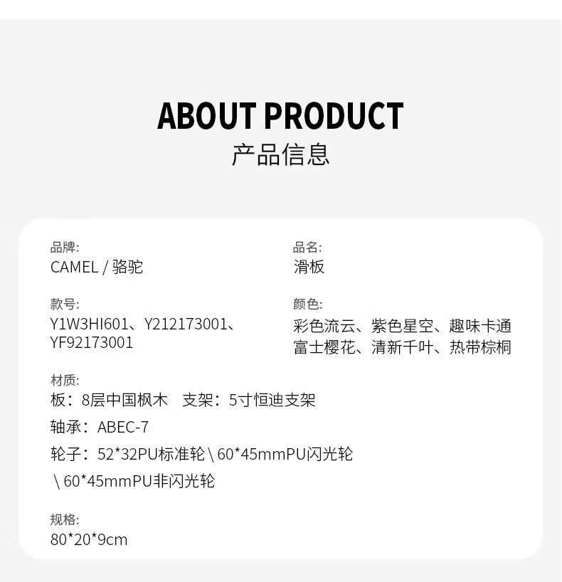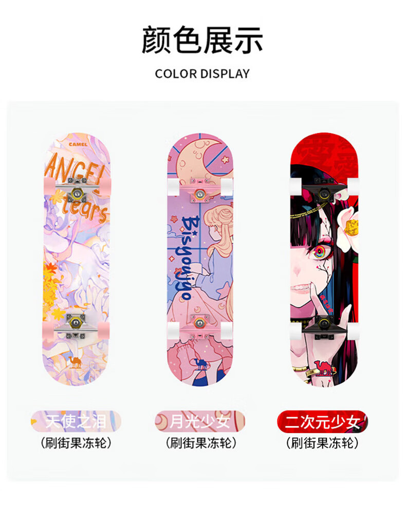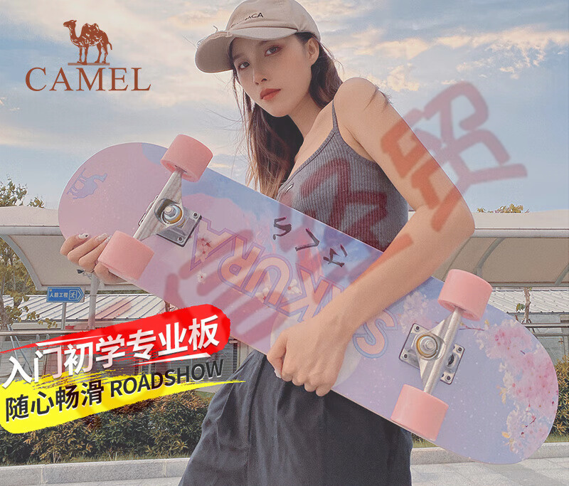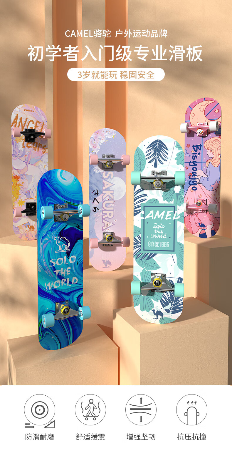 駱駝(CAMEL) 滑板初學者板雙翹板兒童男女生青少年入門滑板車6-12 Y212173001-1,富士櫻花(初學標準小輪) 自營