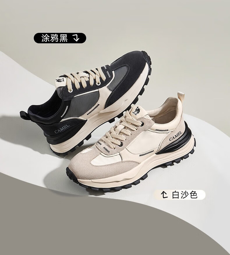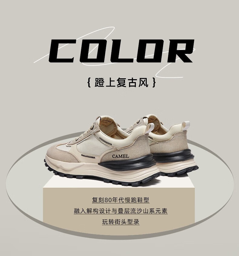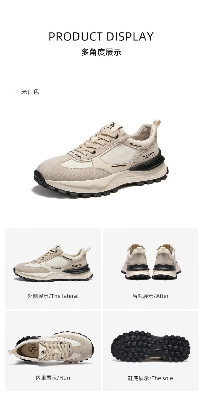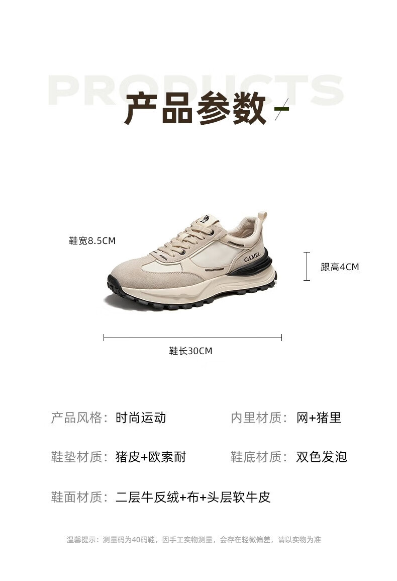 駱駝(CAMEL)休閑男鞋2023春季厚底慢跑時(shí)尚運(yùn)動(dòng)休閑鞋男 G13S187087,米色 38 自營(yíng)