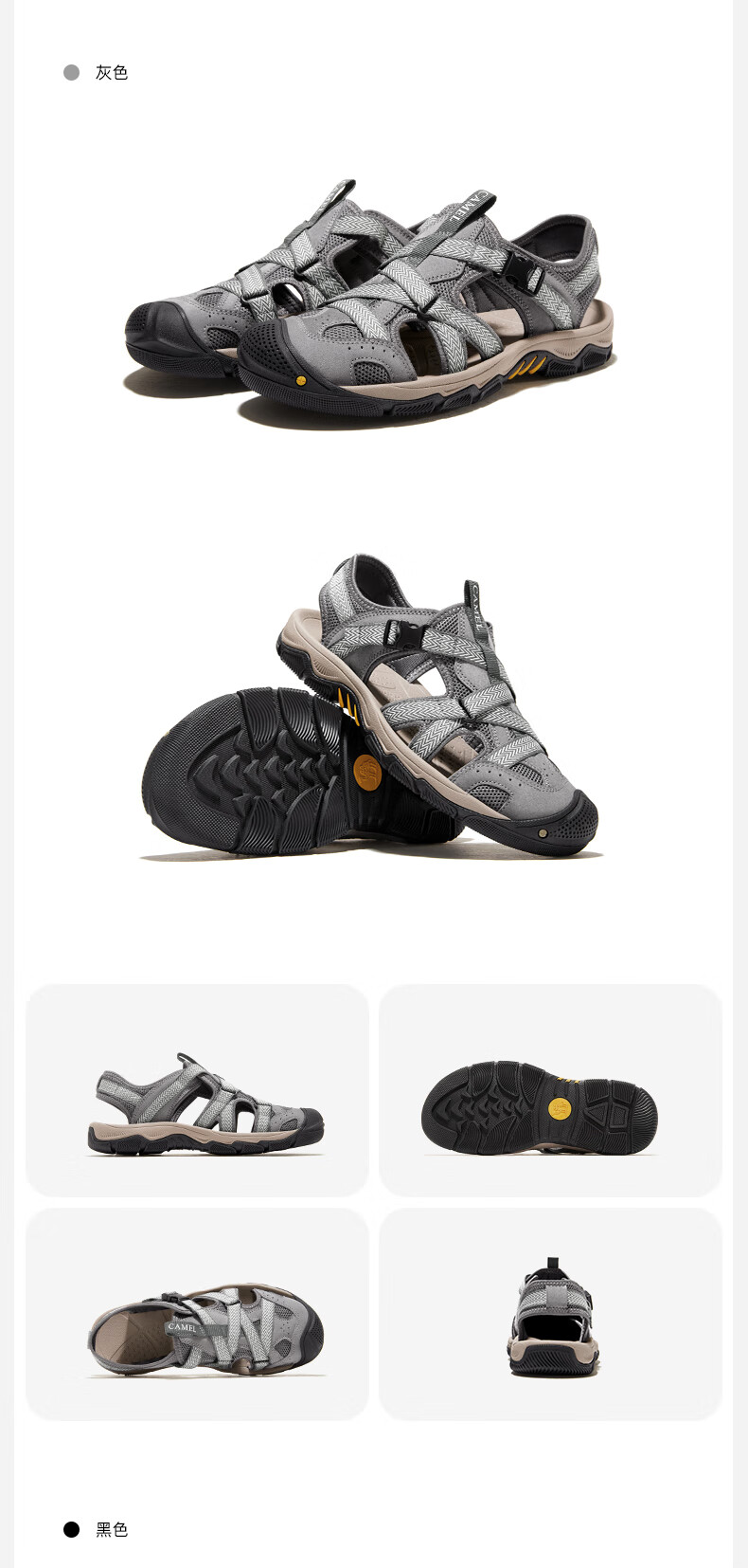 駱駝(CAMEL)戶外涼鞋男士2023夏季溯溪涉水速干沙灘鞋防滑休閑運(yùn)動鞋 F13M307412,灰色 38 自營