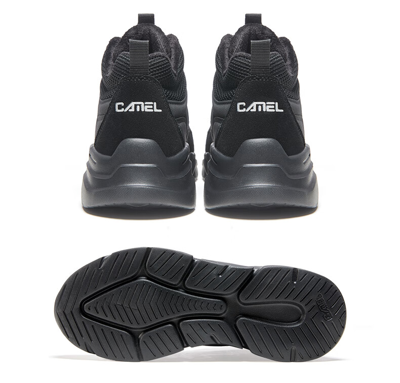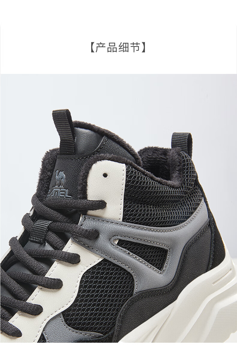 駱駝(CAMEL)男鞋高幫加絨保暖厚底男士純色拼接潮流休閑運(yùn)動鞋 A142318875,黑灰,男款 39 自營