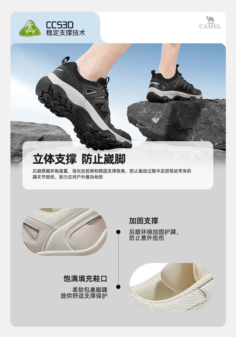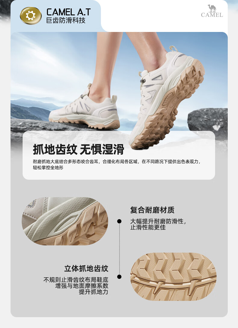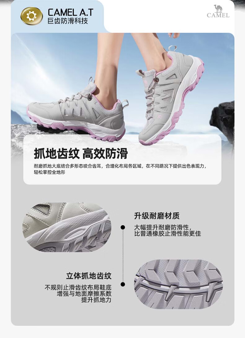 駱駝(CAMEL)戶外登山鞋女2023夏季防滑運(yùn)動(dòng)鞋透氣爬山專業(yè)徒步鞋男鞋 F23M303010,淺灰/粉,女 35 自營(yíng)