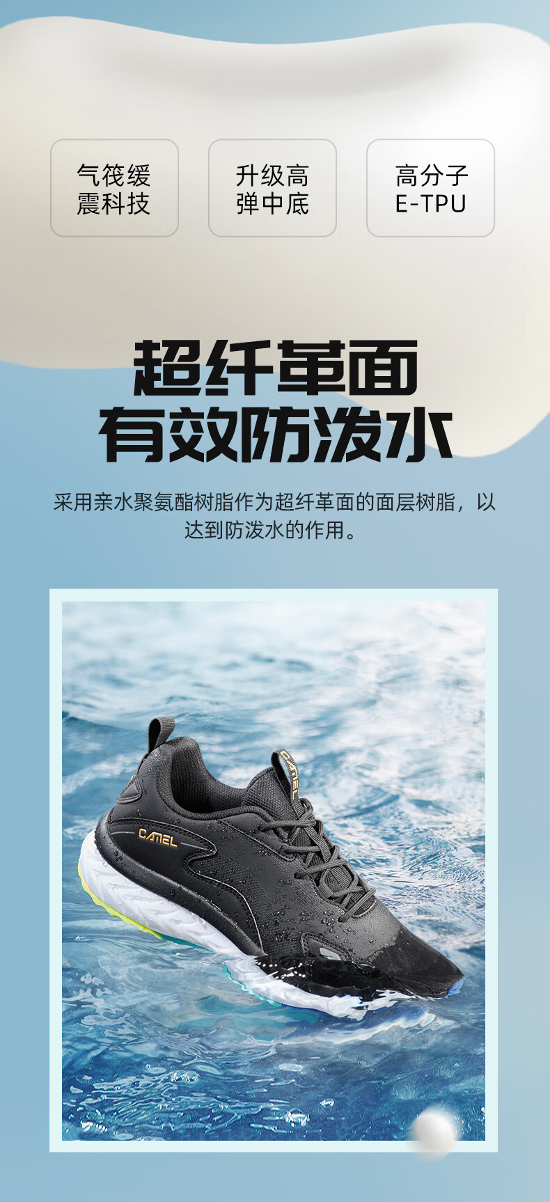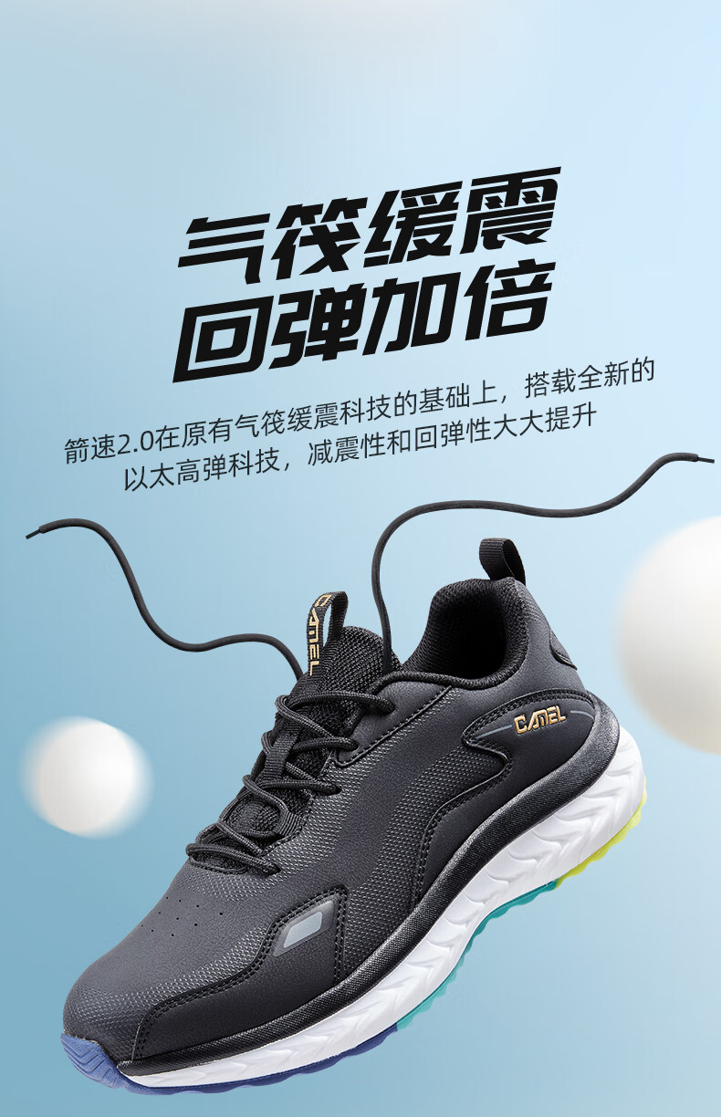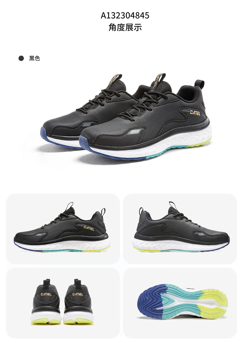 駱駝(CAMEL) 運(yùn)動(dòng)休閑男鞋皮面男款跑步鞋 A132304845,黑色,男 40 自營(yíng)