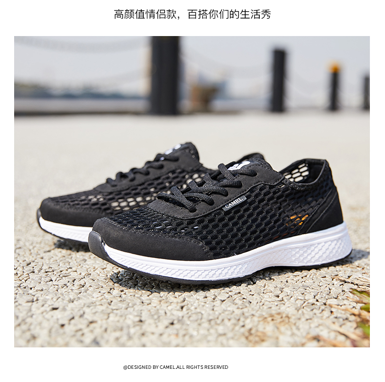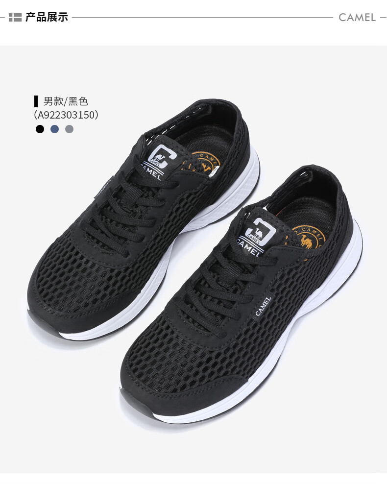 駱駝(CAMEL)運(yùn)動(dòng)鞋男鞋戶外舒適休閑鞋時(shí)尚百搭情侶鞋子網(wǎng)面透氣網(wǎng)鞋 A922303150,黑/白,男 43 自營(yíng)