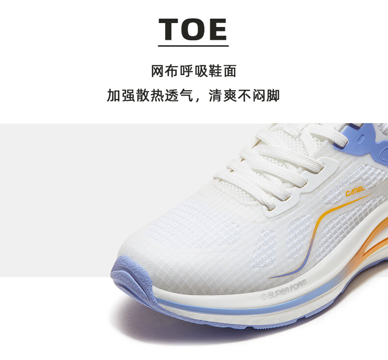 駱駝氣墊鞋2023秋冬情侶款耐磨防滑透氣網(wǎng)面運動跑步鞋 C13S397025,白/天藍,男 41