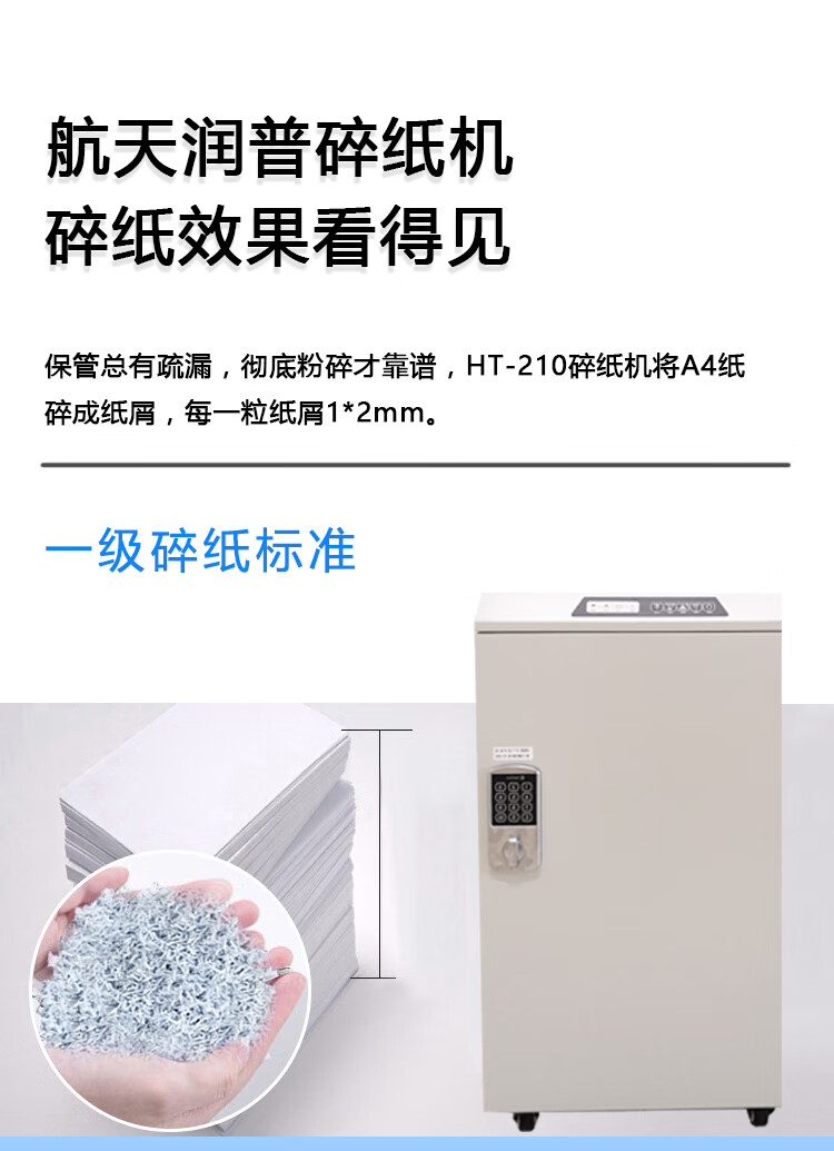 航天潤(rùn)普 保密碎紙機(jī)HT-210 碎紙等級(jí)1級(jí) 碎紙顆粒1mm*2mm國(guó)家保密科技測(cè)評(píng)認(rèn)證 自營(yíng)