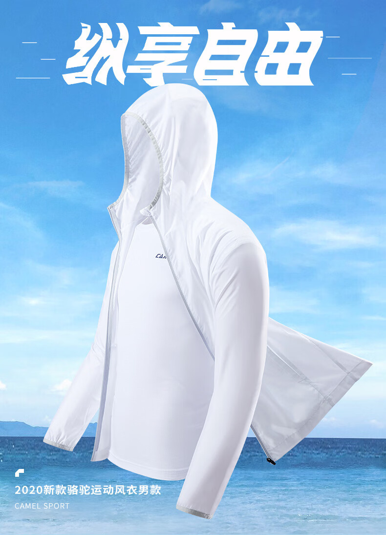 駱駝(CAMEL)運(yùn)動(dòng)外套女輕薄透氣戶外跑步防風(fēng)防雨情侶連帽梭織風(fēng)衣 C0W2Y6657,動(dòng)力白【男】 XXXL 自營(yíng)