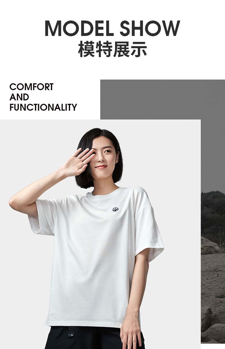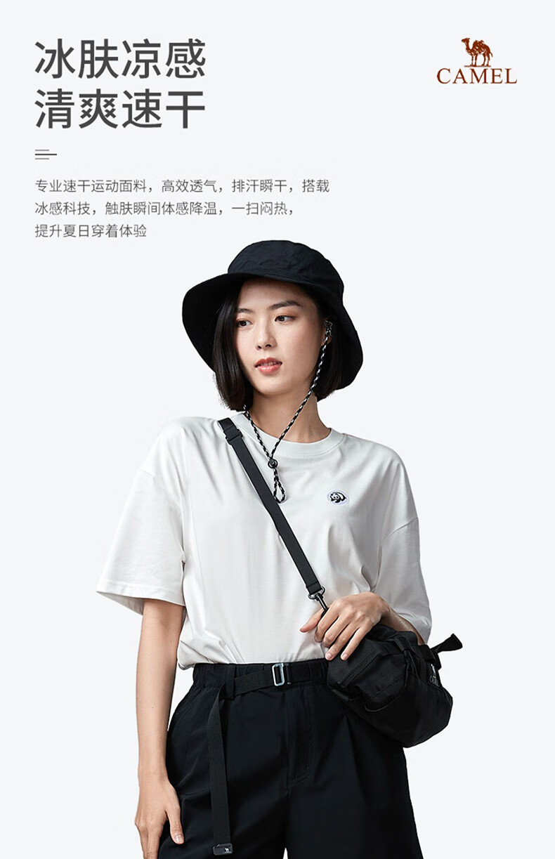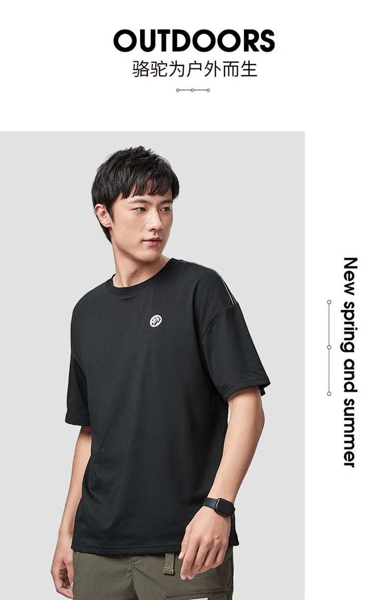 駱駝(CAMEL)【熊貓】戶外吸濕速干男女情侶短袖上衣春夏寬松運動服裝 A13BAVV112,幻影黑,男女同款 S 自營