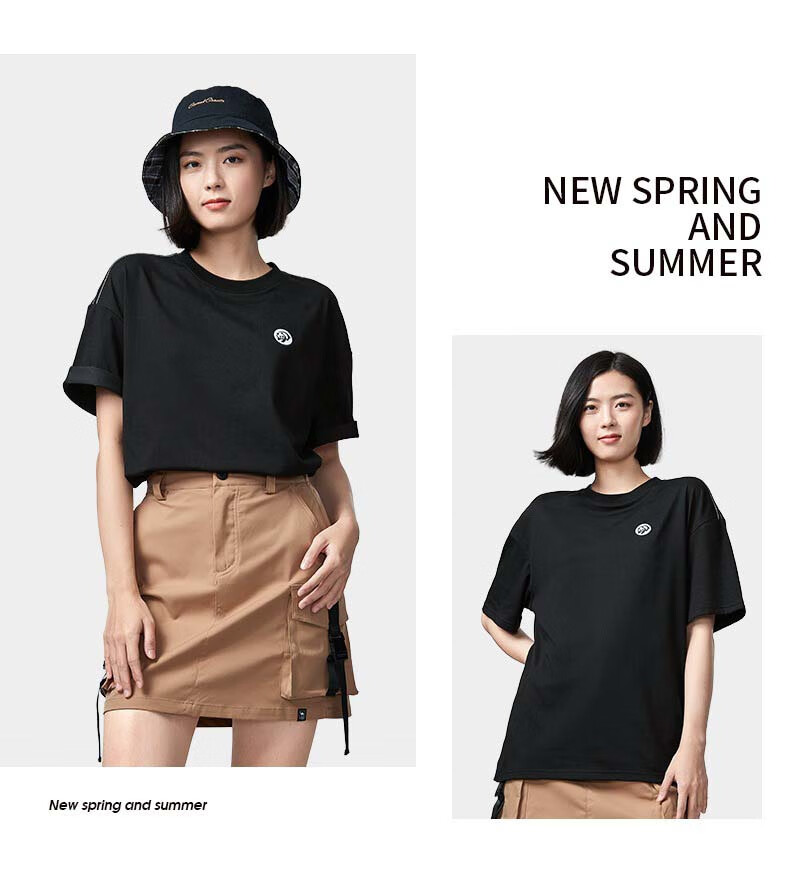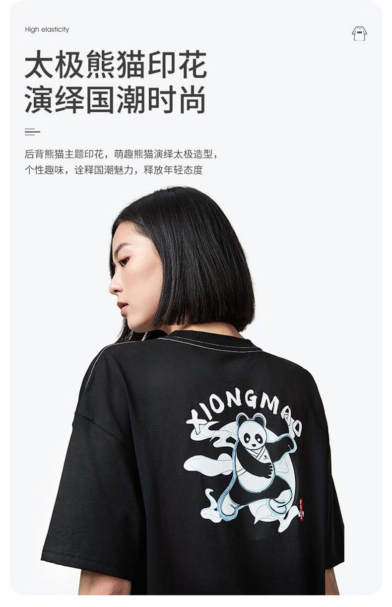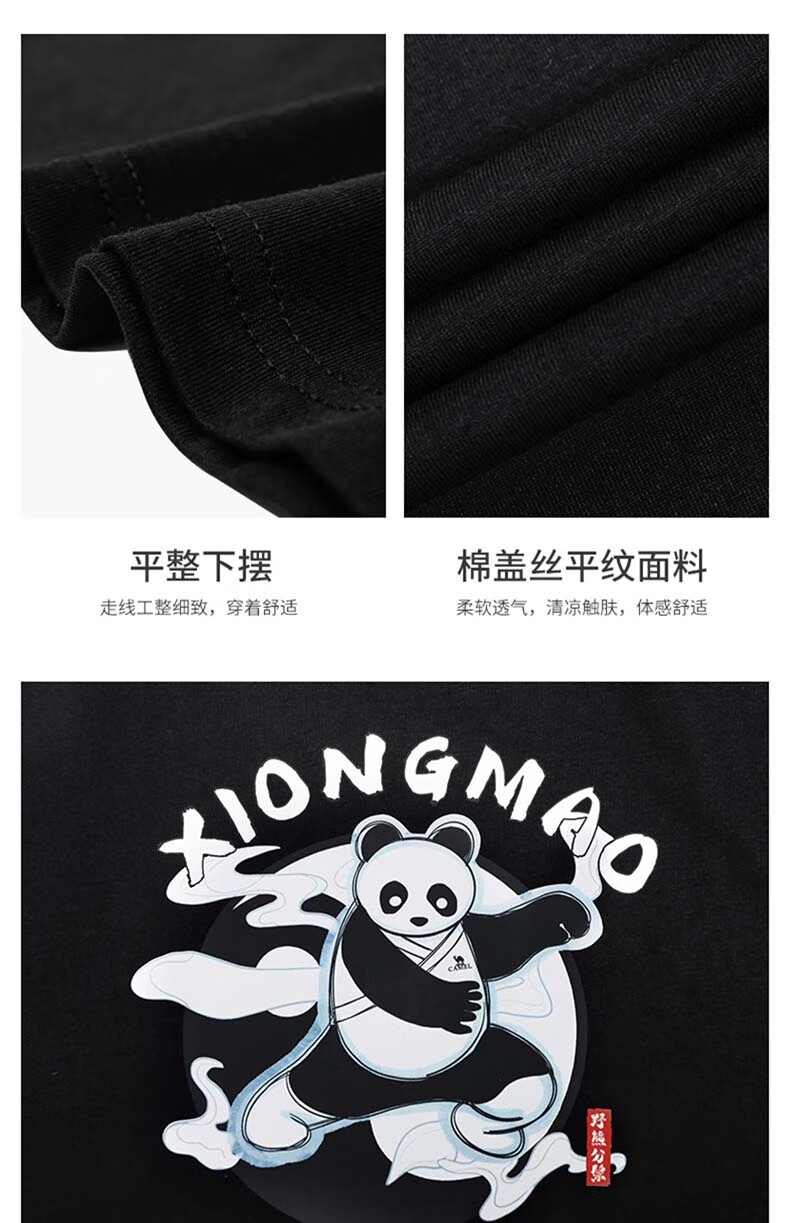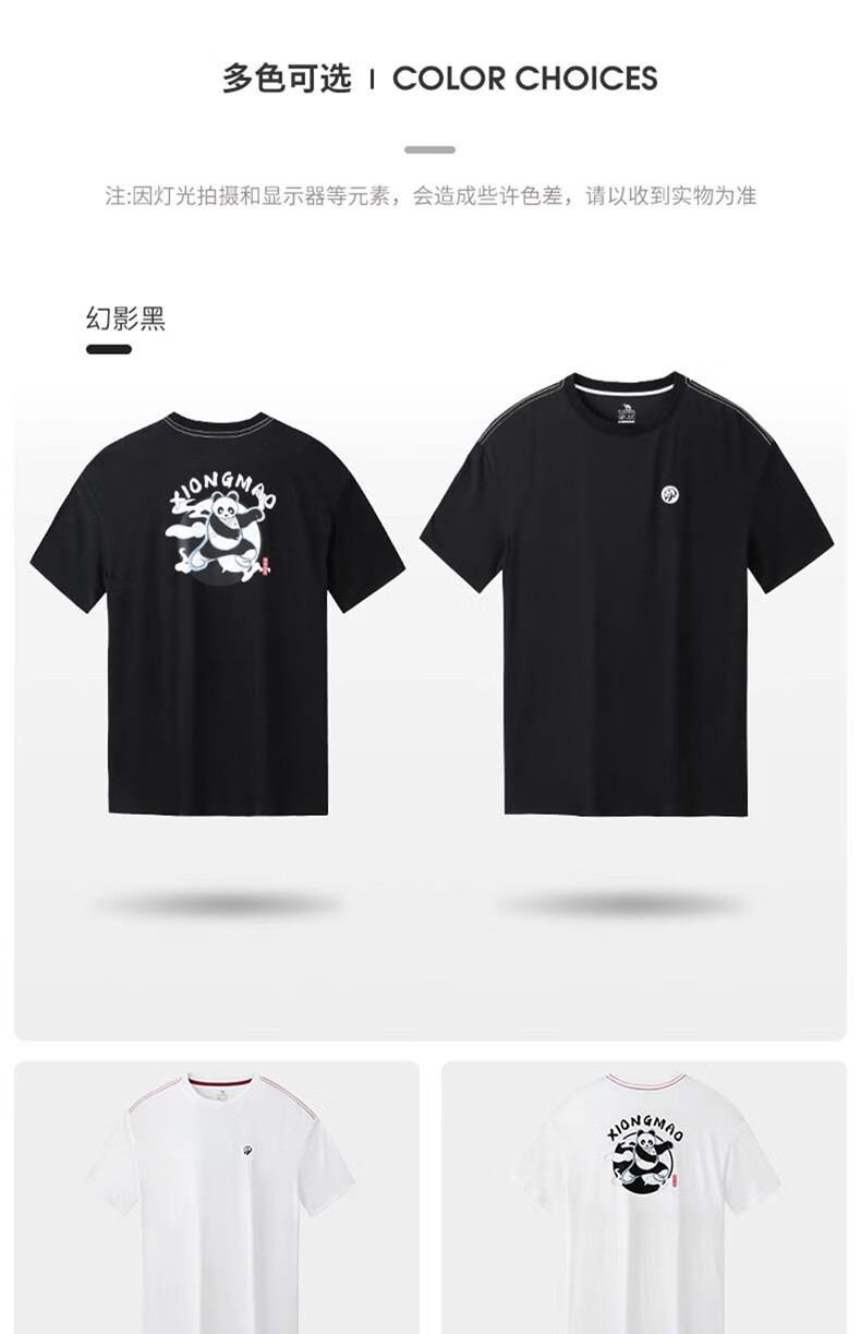 駱駝(CAMEL)【熊貓】戶外吸濕速干男女情侶短袖上衣春夏寬松運動服裝 A13BAVV112,幻影黑,男女同款 S 自營