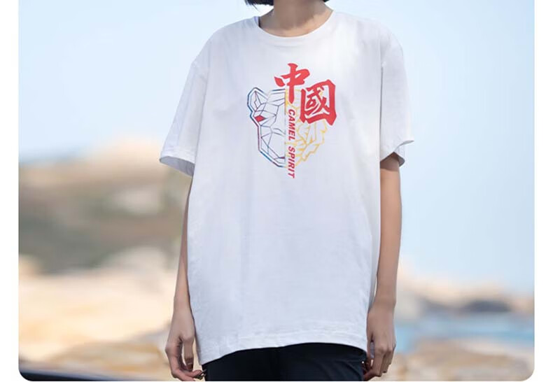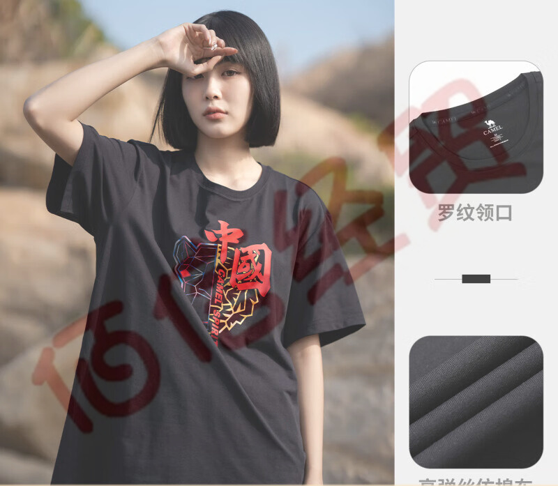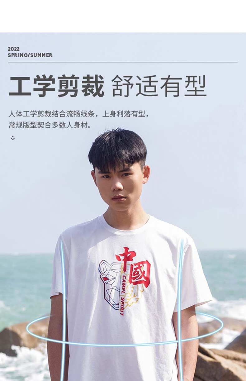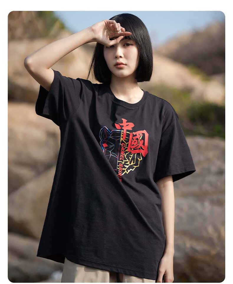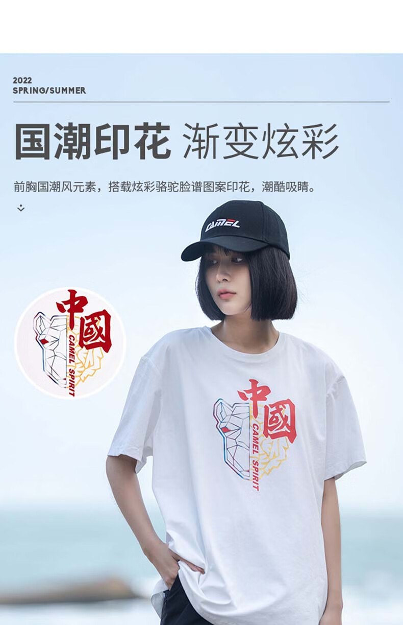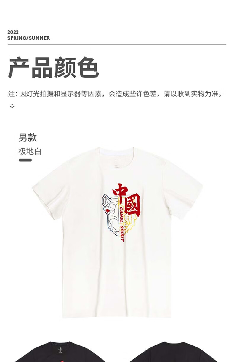 駱駝(CAMEL)戶外短袖男款春夏速干T恤國潮印花時尚休閑上衣 7012221005,幻影黑 XL 自營