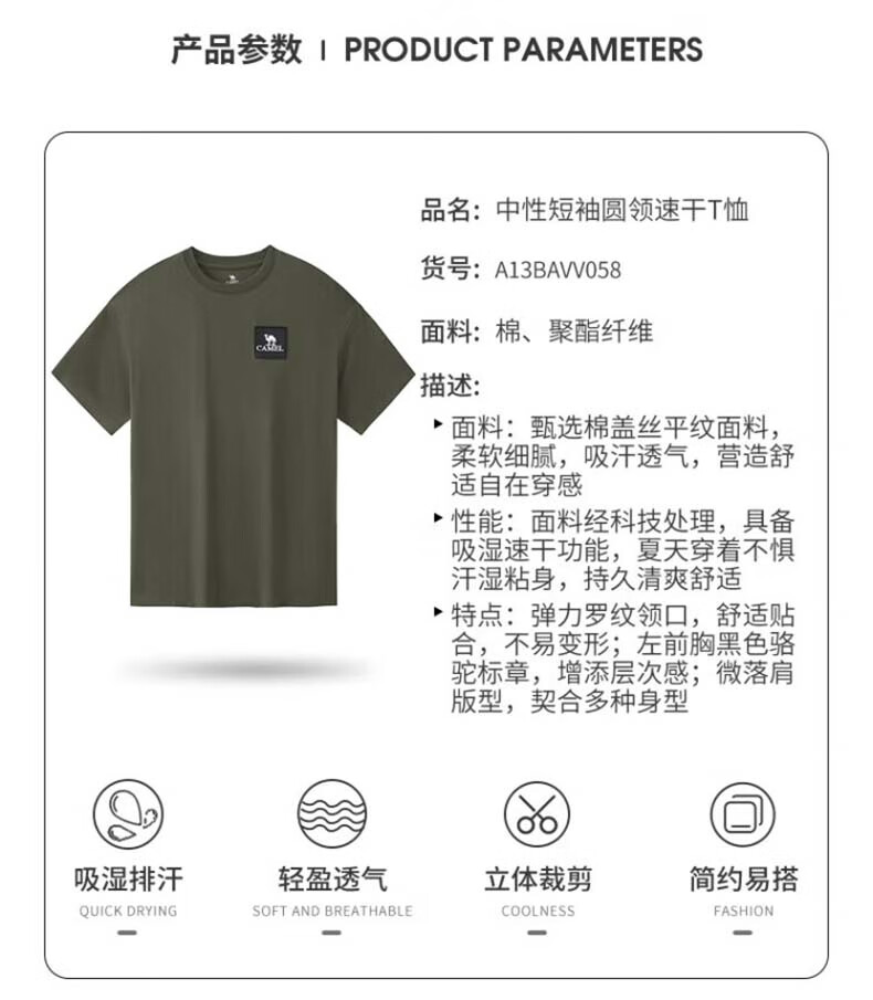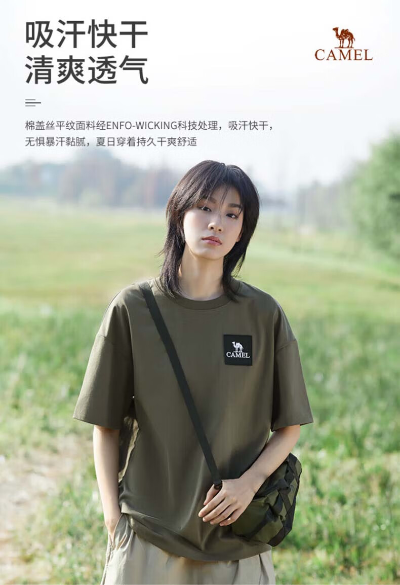 駱駝(CAMEL)[山系露營]戶外速干2023春夏快干彈力T恤男女 幻影黑,男女同款,女拍小一碼 M 自營