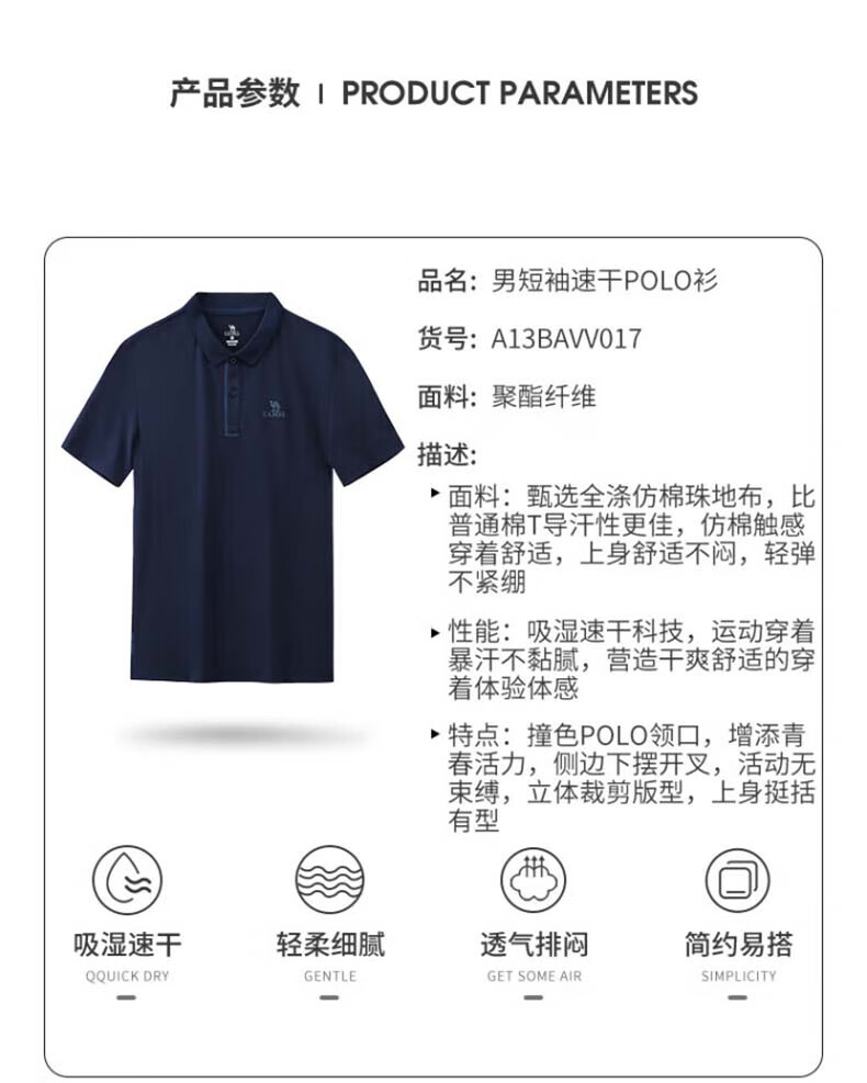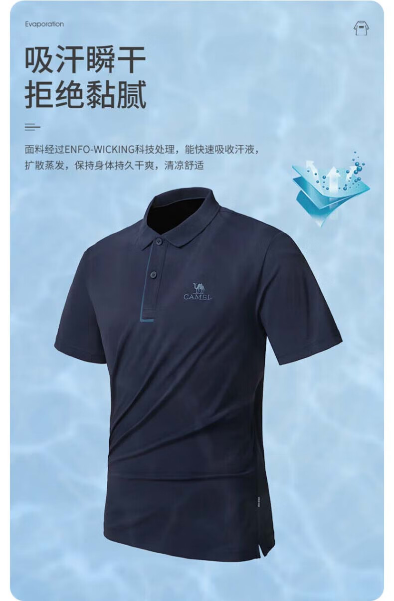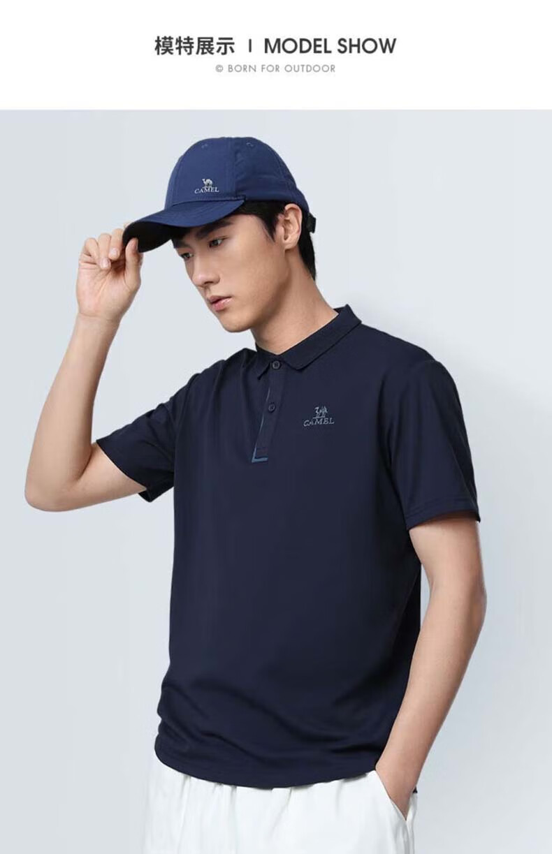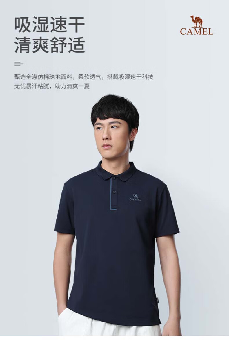 駱駝(CAMEL)男裝短袖速干POLO衫2023春夏季時尚撞色領(lǐng)口寬松上衣 A13BAVV017,墨藍,男 L 自營