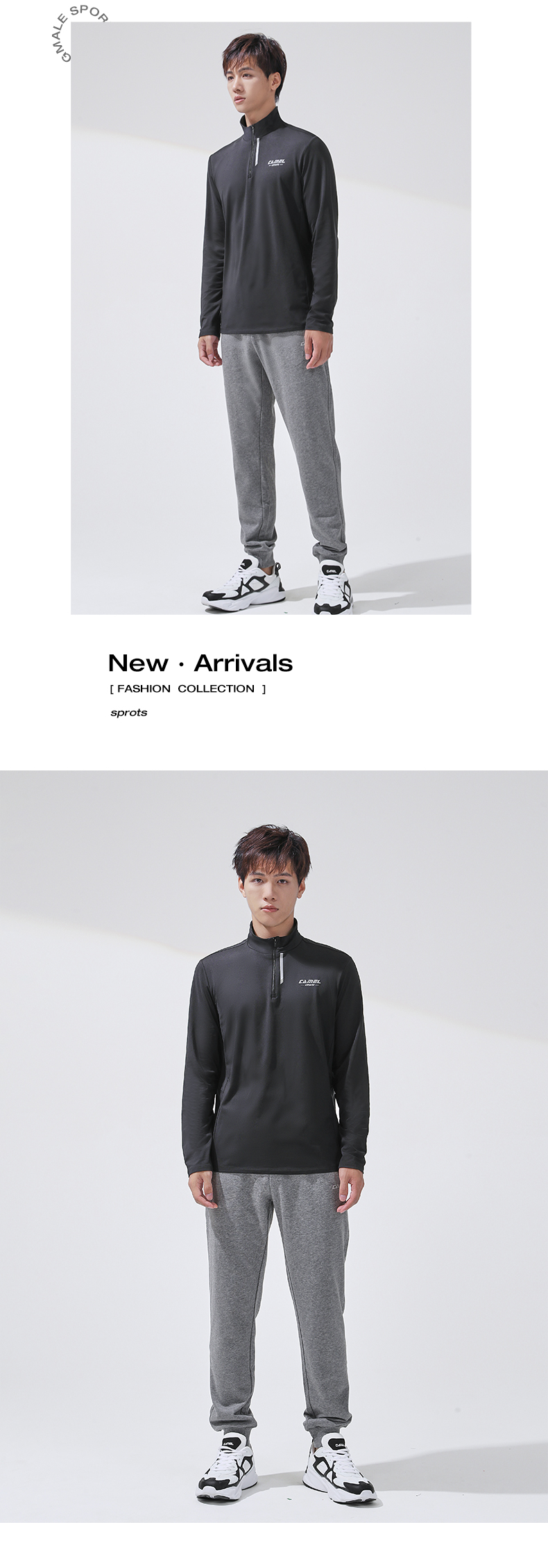 駱駝戶外健身速干T恤男士2023夏季吸汗透氣百搭跑步圓領(lǐng)短袖 J13BA40024,幻影黑,男 XXL