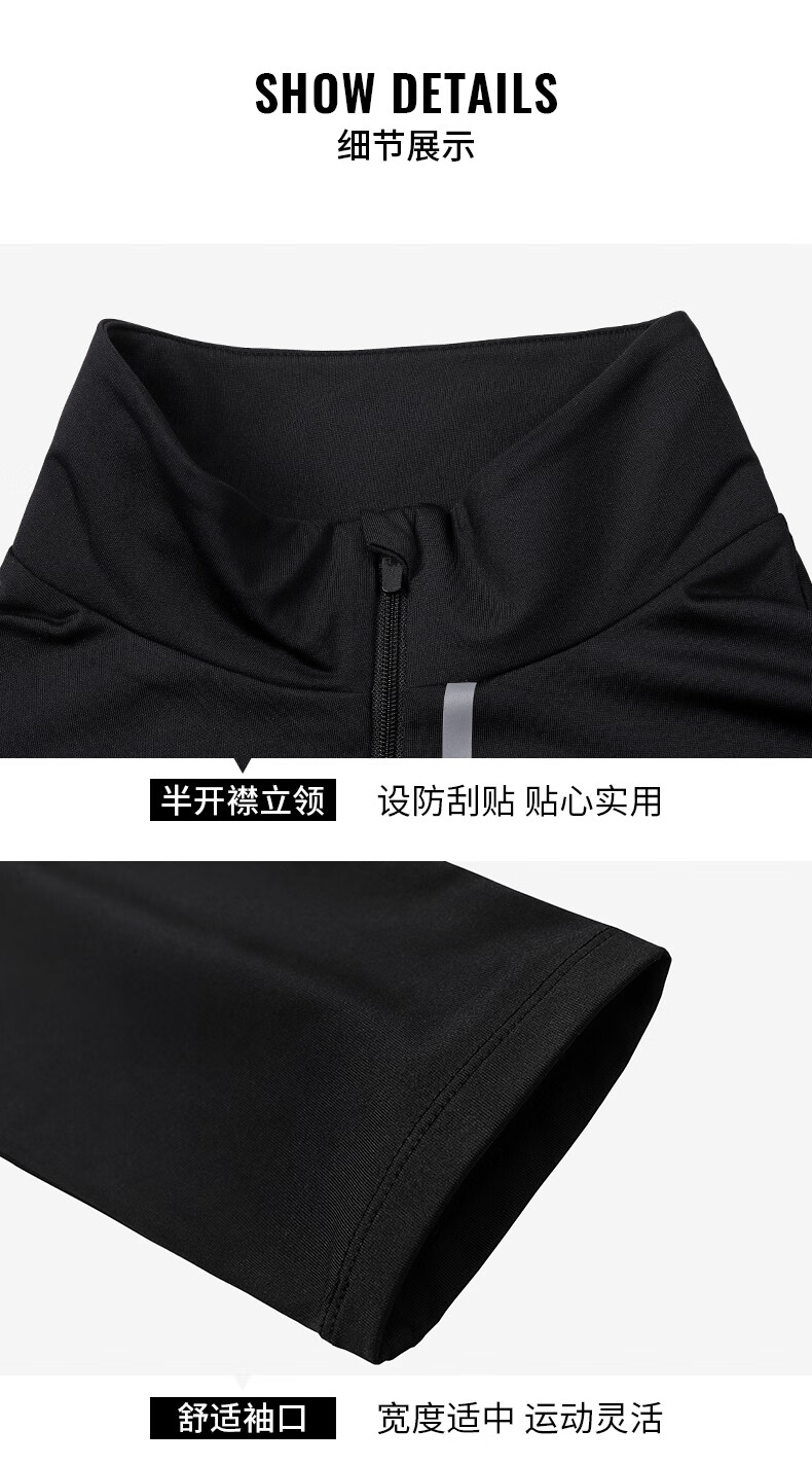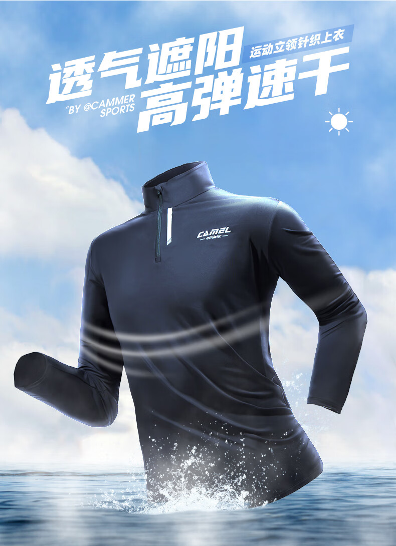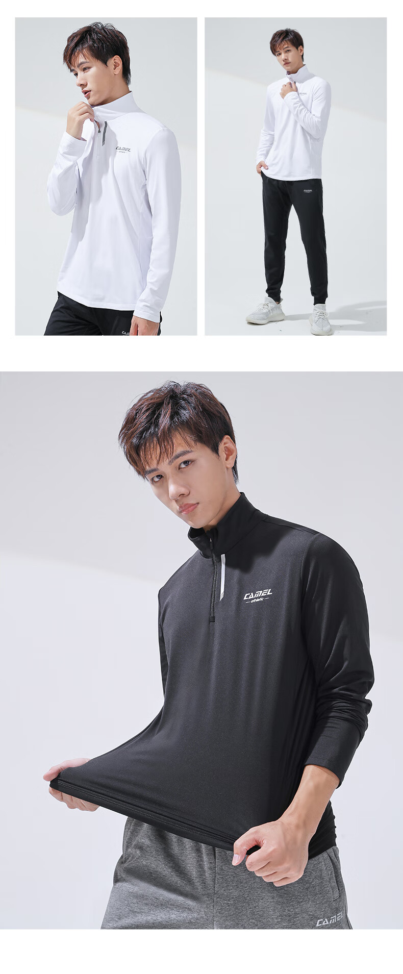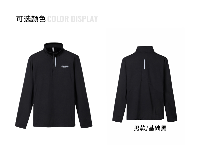 駱駝(CAMEL)運(yùn)動(dòng)長(zhǎng)袖T恤男士薄款運(yùn)動(dòng)快干衣服立領(lǐng)針織上衣 基礎(chǔ)黑 XL 自營(yíng)