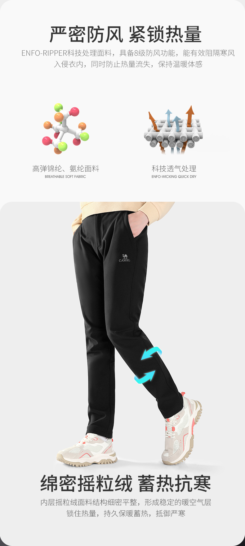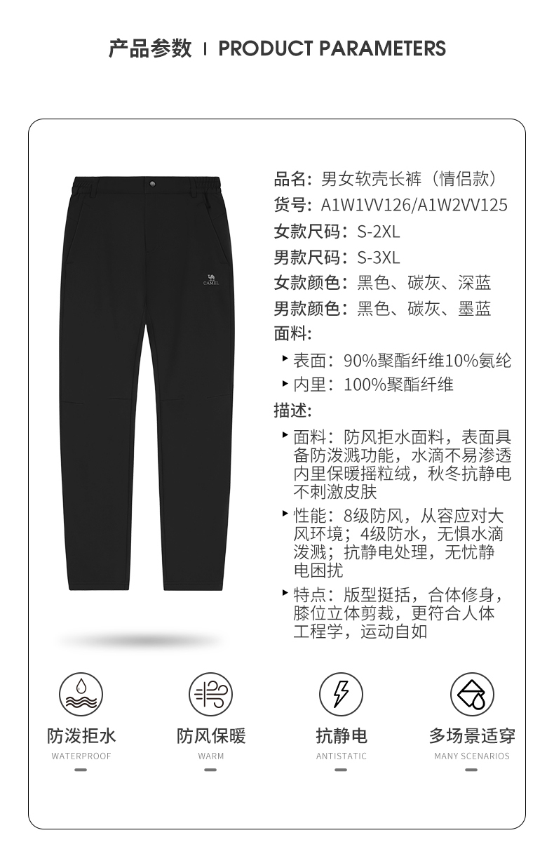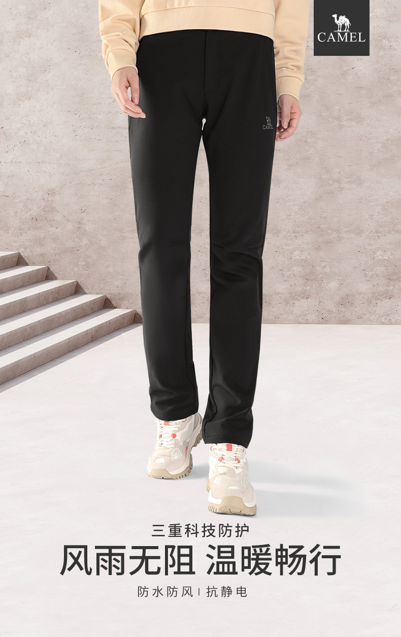 駱駝(CAMEL)戶外軟殼褲長(zhǎng)褲男款保暖休閑褲防潑水防風(fēng)登山褲 A1W2VV125,墨藍(lán),男 XL 自營(yíng)