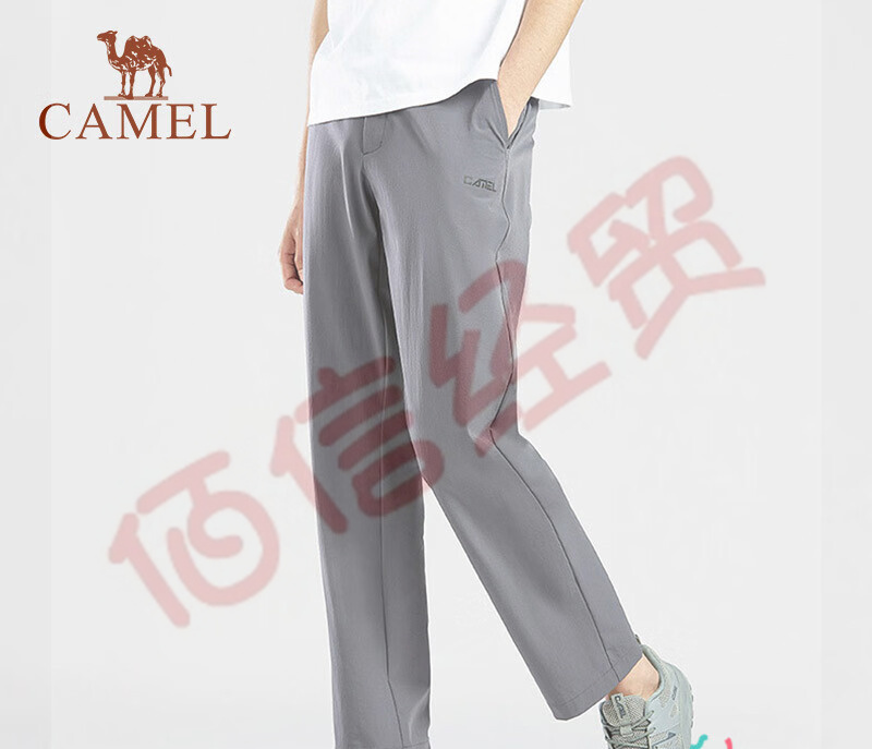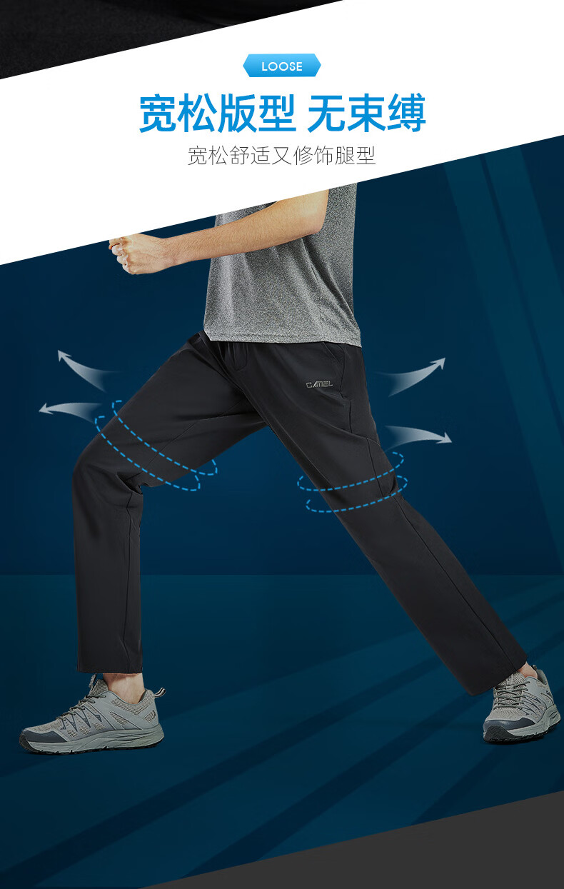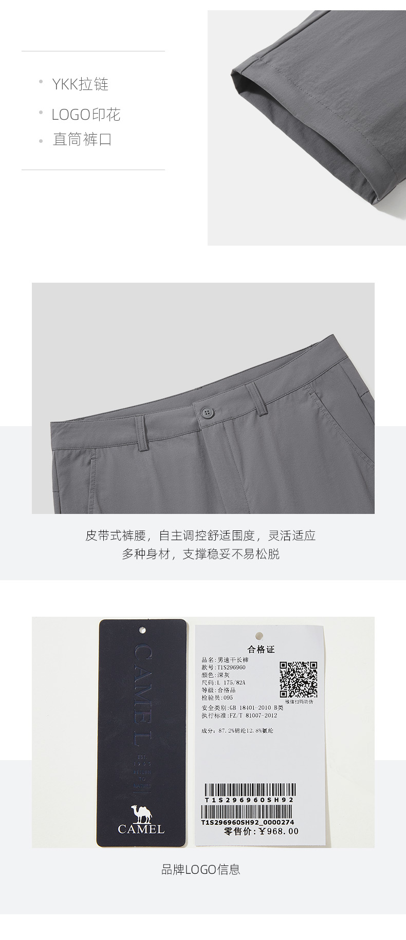 駱駝(CAMEL)速干褲男薄款透氣彈力快干休閑褲直筒輕薄運動褲子男 T1S296960,深灰,男款 XL 自營