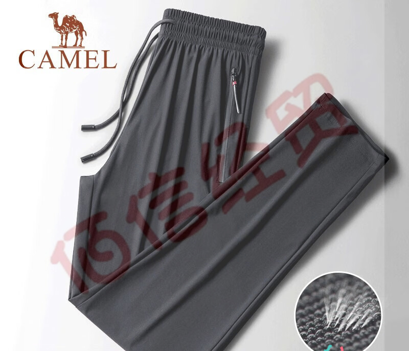 駱駝(CAMEL)運(yùn)動(dòng)褲男薄款冰絲褲舒適寬松直筒梭織長(zhǎng)褲男裝休閑衛(wèi)褲 XAP435178,黑色(偏小一碼) XXXL 自營(yíng)