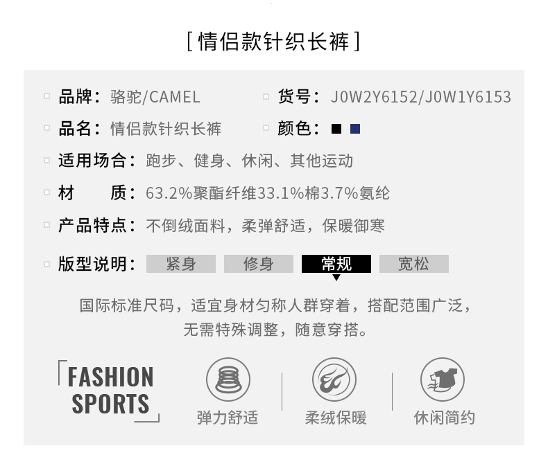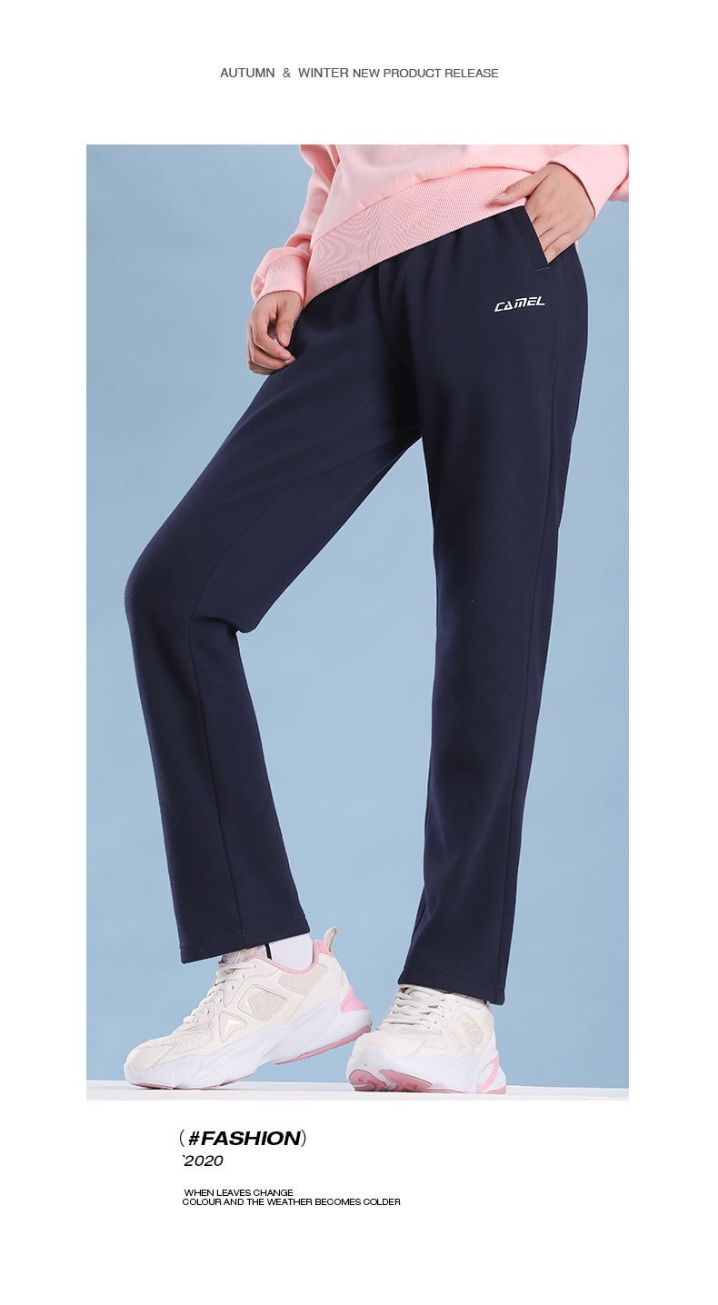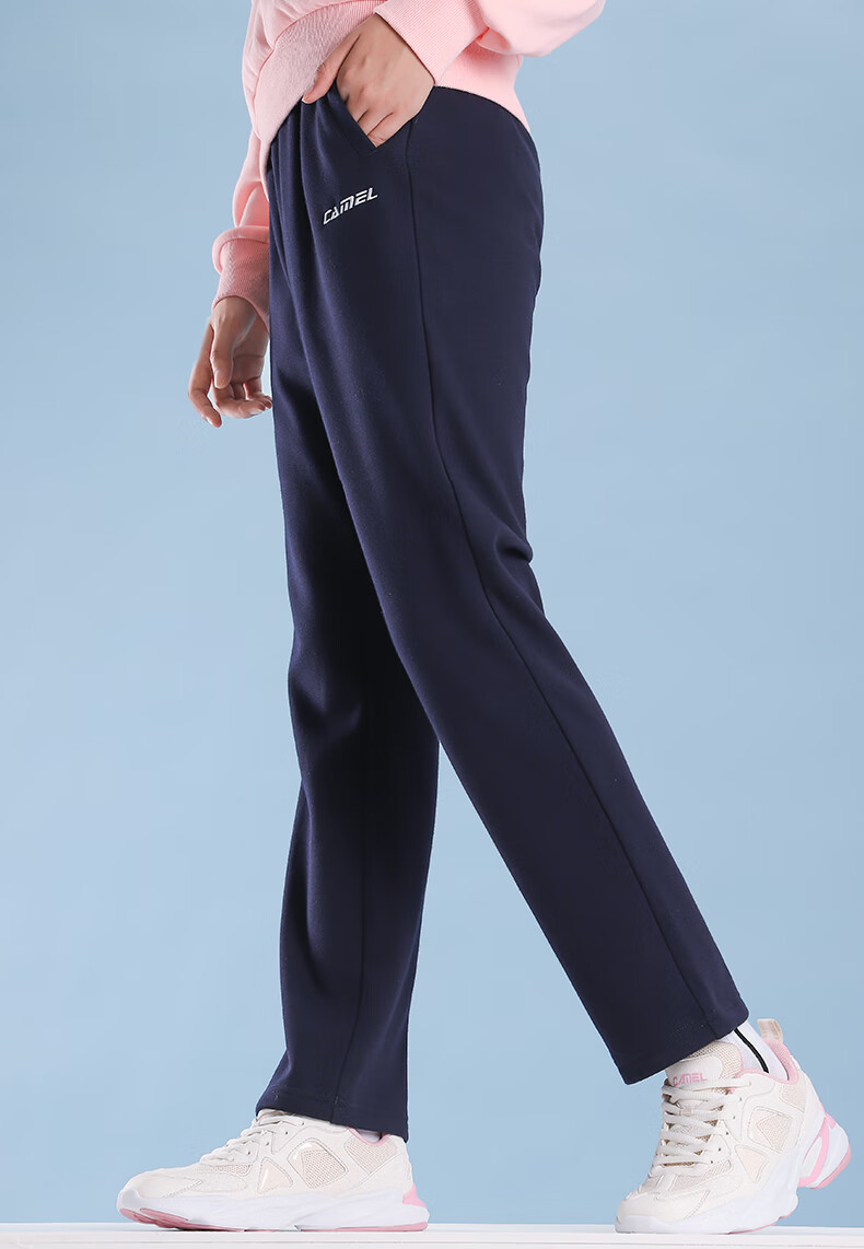 駱駝(CAMEL)運(yùn)動(dòng) 長(zhǎng)褲男女針織彈力跑步褲子寬松透氣健身休閑褲潮 J0W1Y6153, 深藍(lán),女 XXL 自營(yíng)