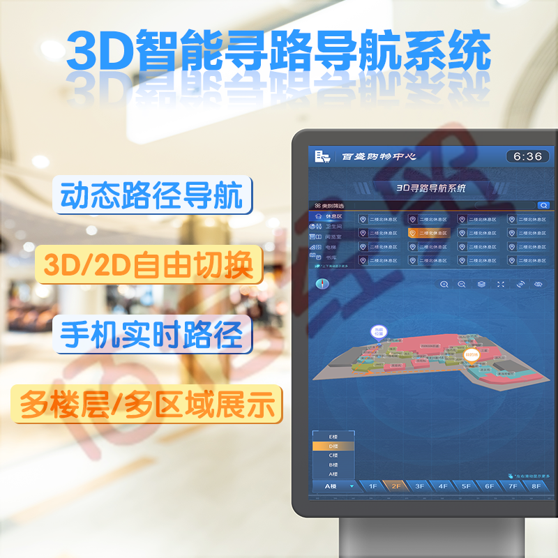 視爾商場導(dǎo)視系統(tǒng) 3D標(biāo)識導(dǎo)向路線圖導(dǎo)購自助尋路樓層導(dǎo)航終端一體機(jī)商場地圖地下室停車場收費(fèi)軟件定制 VR沉浸式導(dǎo)航系統(tǒng) 自營