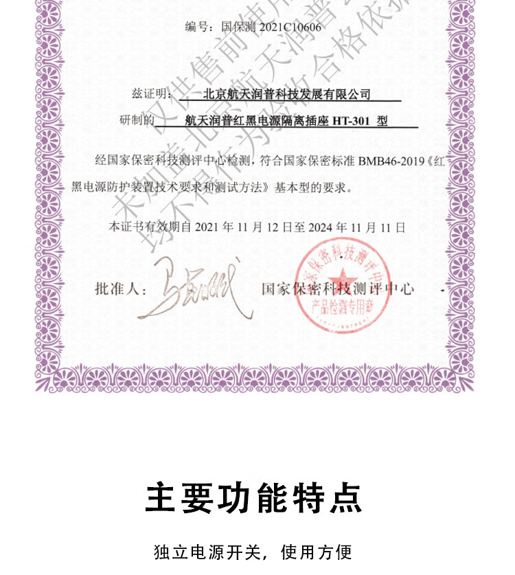 航天潤普 HT-301 紅黑電源隔離插座 自營