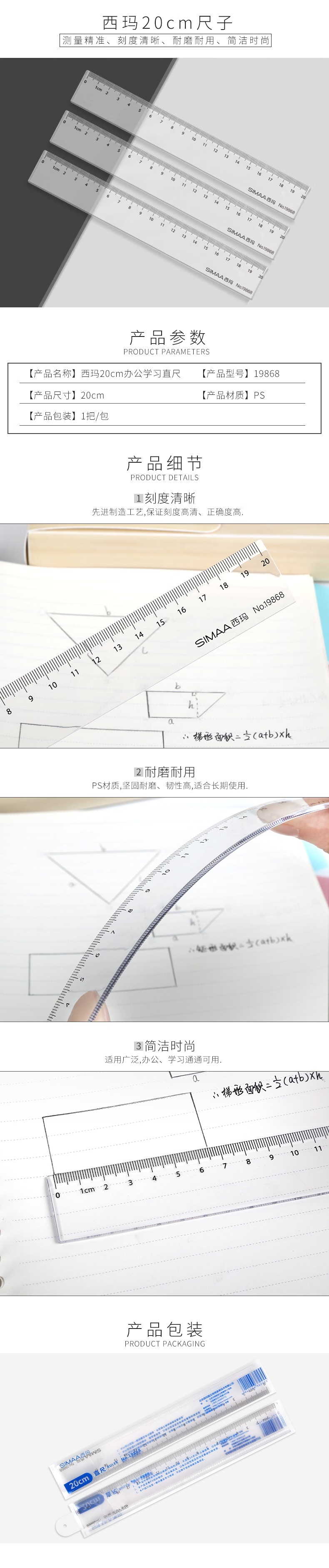 西瑪20cm辦公尺子 通用直尺 學生文具繪圖直尺 19868(10個起售) 自營