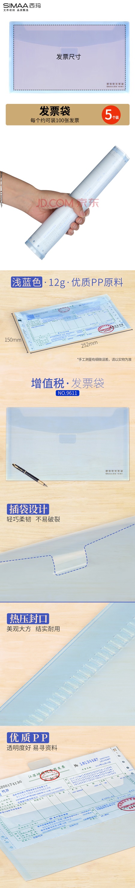 西瑪(SIMAA)5個(gè)裝 發(fā)票袋/增值稅發(fā)票套/文件袋藍(lán) 9611(10個(gè)起售) 自營(yíng)