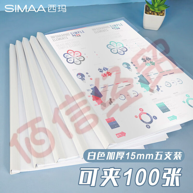 西瑪(SIMAA)5只A4/15mm加厚抽桿夾 辦公報告夾拉桿夾文件夾資料夾白色 文具 6079 自營
