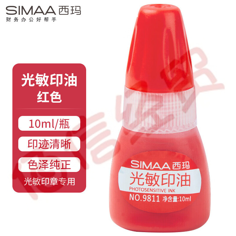 西瑪(SIMAA)10ml 光敏印油紅色 光敏印章油 財務(wù)印章印臺專用 辦公用品(紅、黑、藍(lán)三色咨詢客服) 9811(10個起售) 自營
