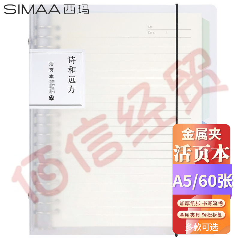 西瑪(SIMAA)A5/60張活頁本筆記本子 帶綁帶可替換替芯記事本 考研復(fù)習(xí)筆記本文具優(yōu)選HYA5-3(10個起售) 自營