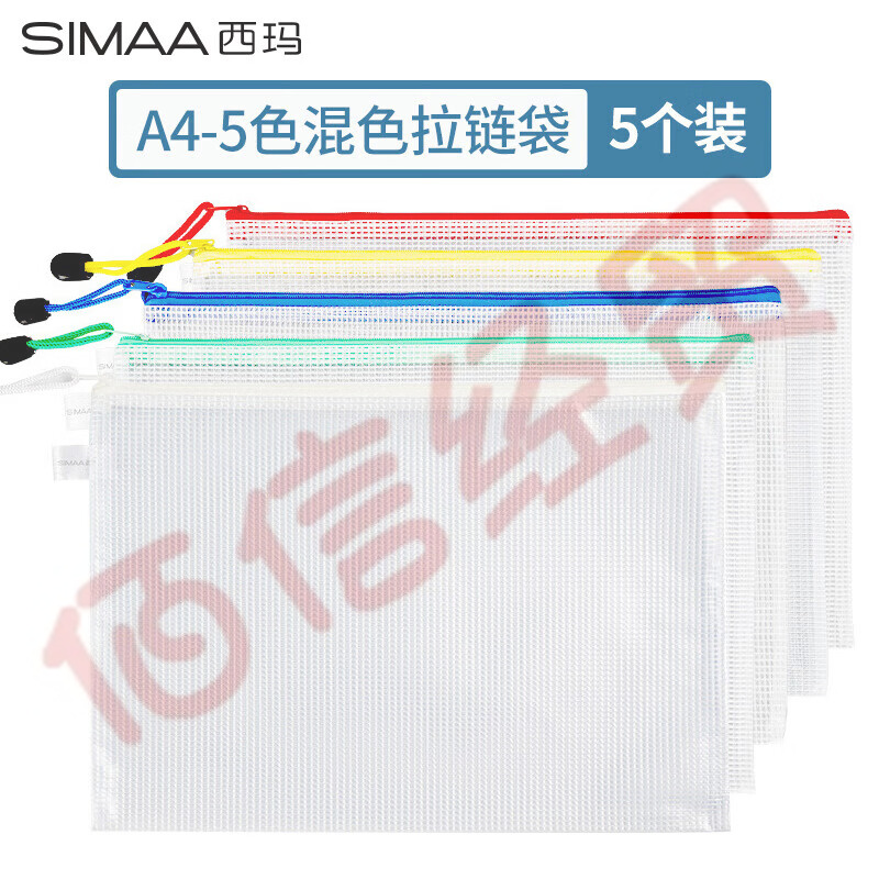 西瑪(SIMAA)5只防水A4網(wǎng)格拉鏈袋 試卷收納袋 文件袋資料袋科目袋 辦公學(xué)習(xí)用品 6855 自營
