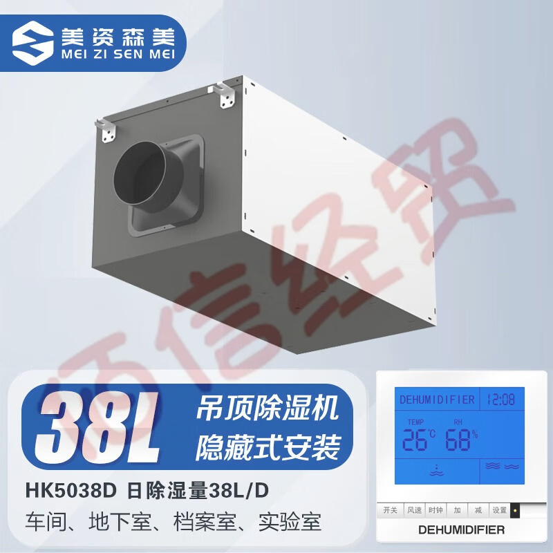 美資森美(MEIZISENMEI) 吊頂除濕機(jī)壁掛式工業(yè)中央抽濕機(jī)地下室管道除濕器吸頂式 HK5038D 日除濕量38L/D 自營