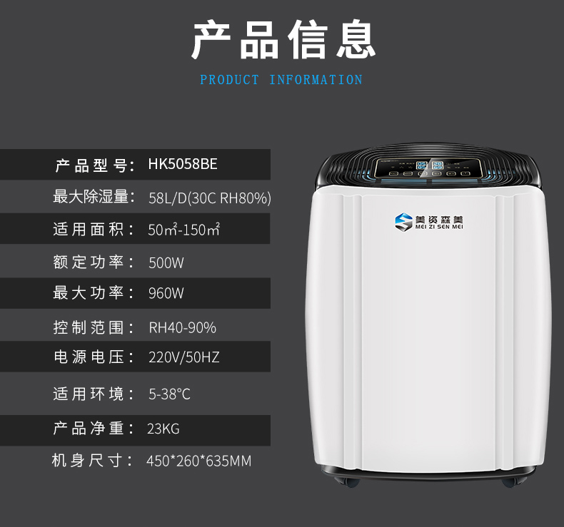 美資森美(MEIZISENMEI) 美資森美除濕機(jī)家用抽濕機(jī)室內(nèi)小型大功率地下室防潮吸濕除濕神器 HK5058BE