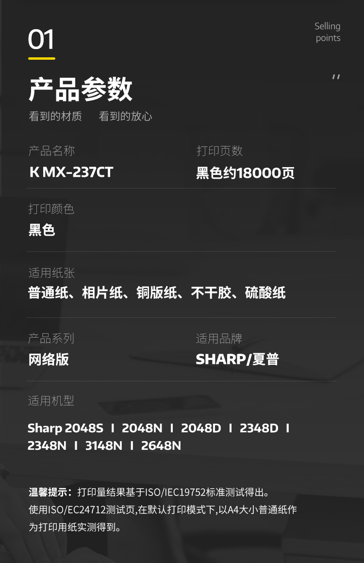 科思特K MX-237CT(帶芯片)適用夏普2048S/2048N/2048NV/2048D MX-237CT粉盒500g/16000頁 專業(yè)版 自營